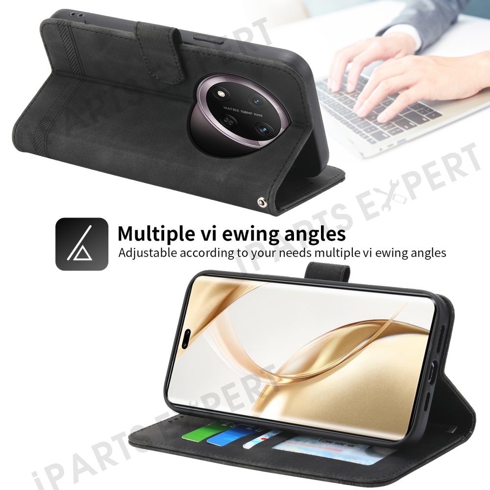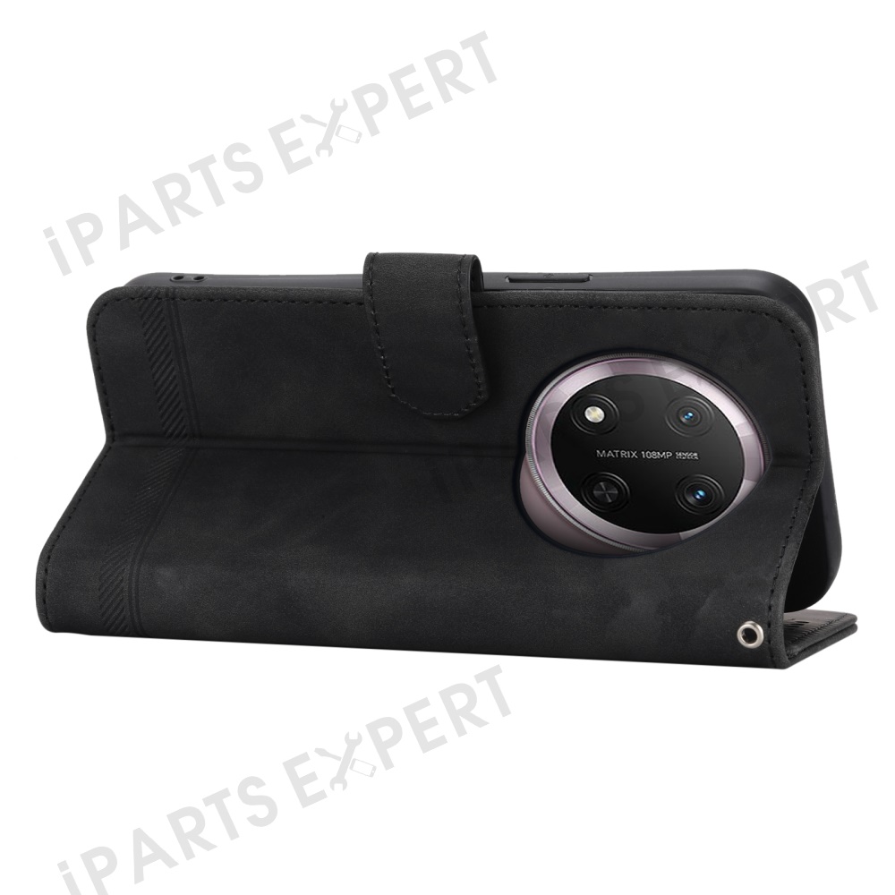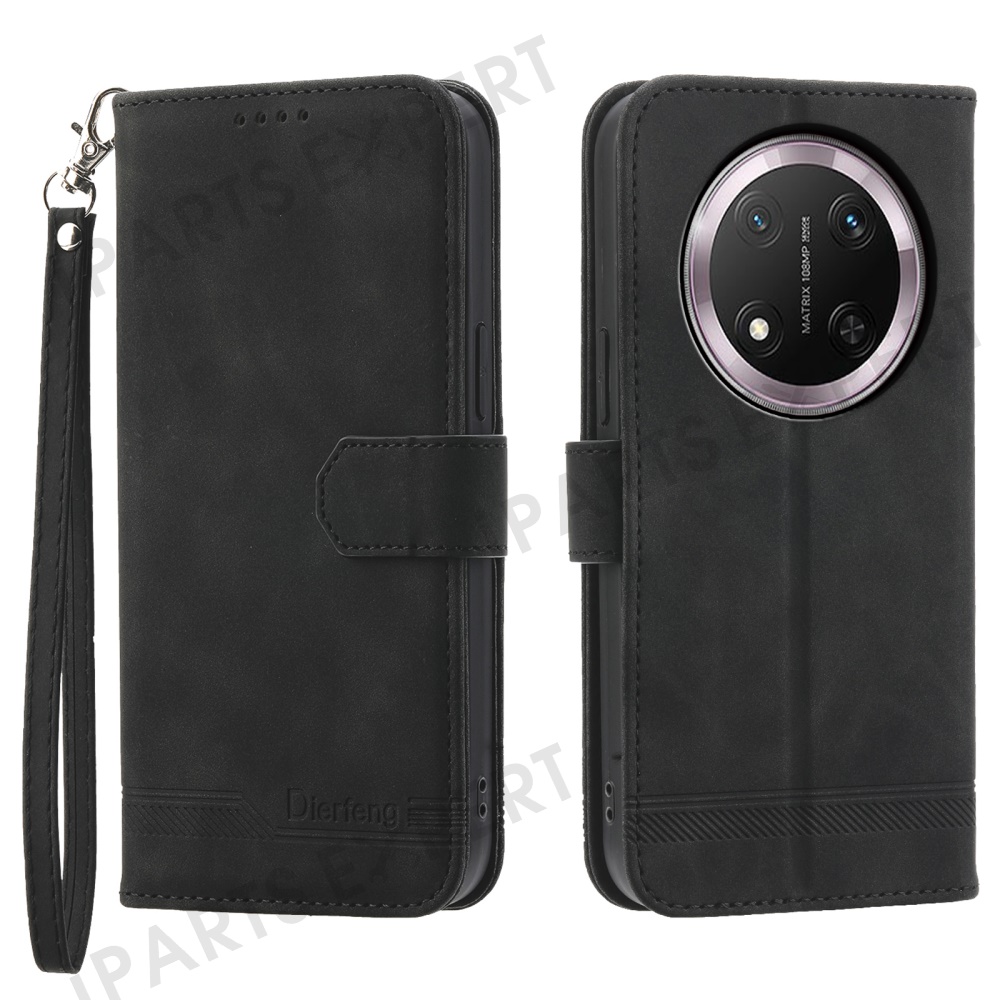 DIERFENG DF-03 For Honor Magic7 Lite 5G / X9c 5G / X60 Pro 5G Leather Case Lines Imprint Wallet Phone Cover - Black