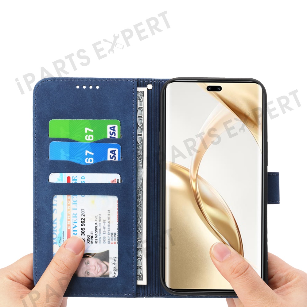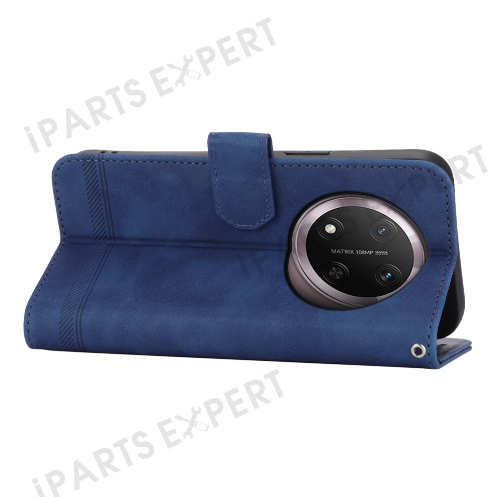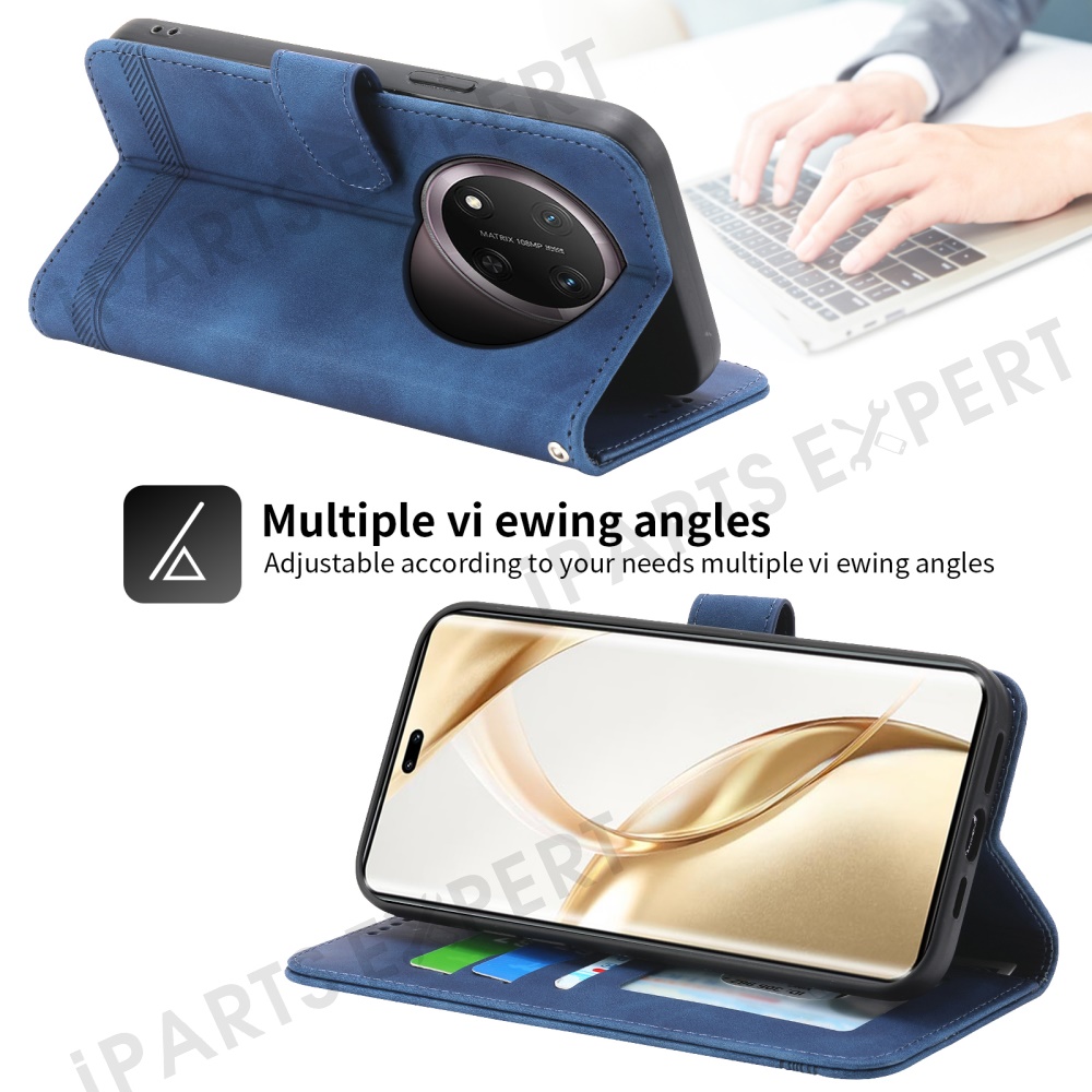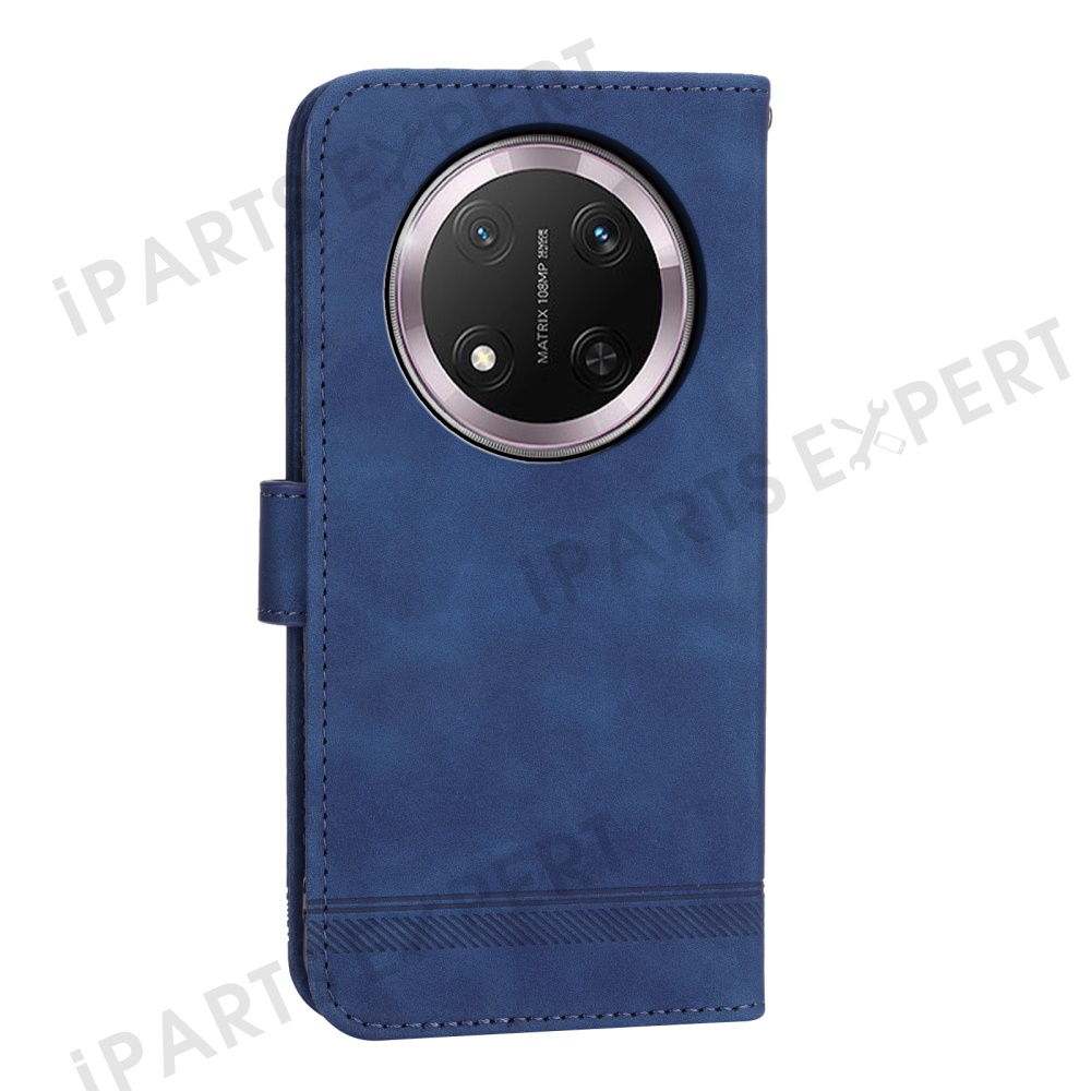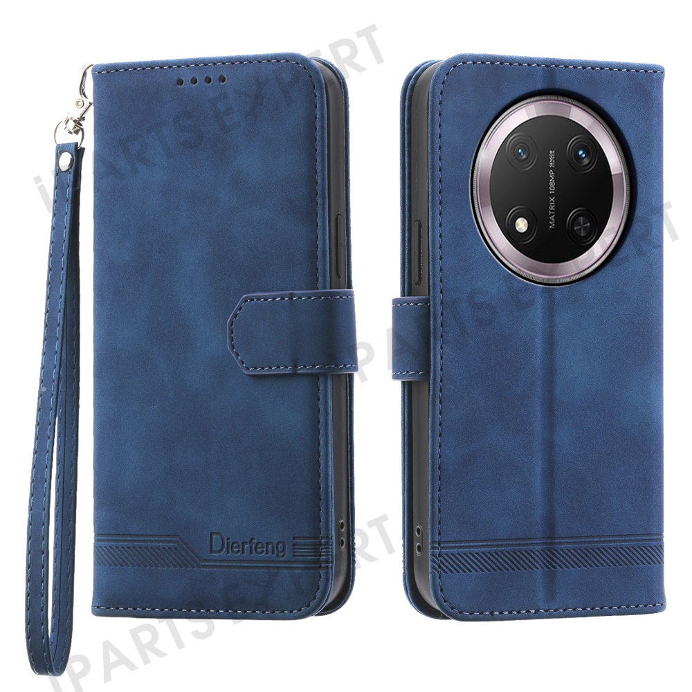 DIERFENG DF-03 For Honor Magic7 Lite 5G / X9c 5G / X60 Pro 5G Leather Case Lines Imprint Wallet Phone Cover - Blue