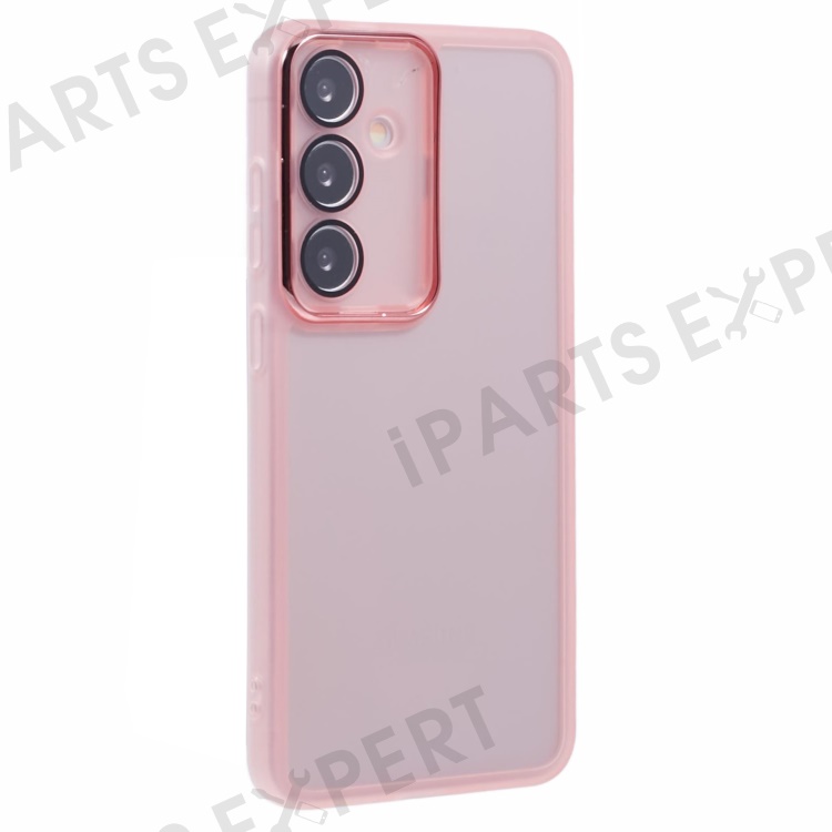 DKSM Series For Samsung Galaxy S24+ Case Electroplated Camera Frame TPU Phone Cover - Transparent Pink