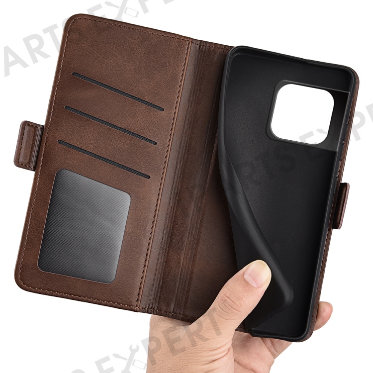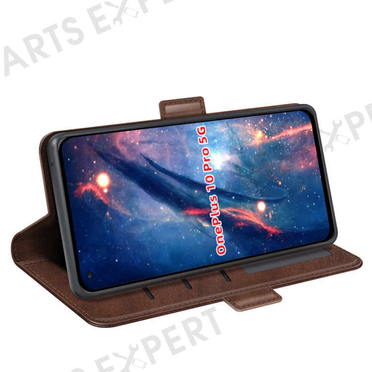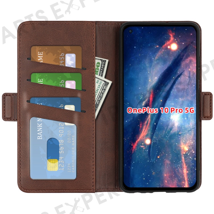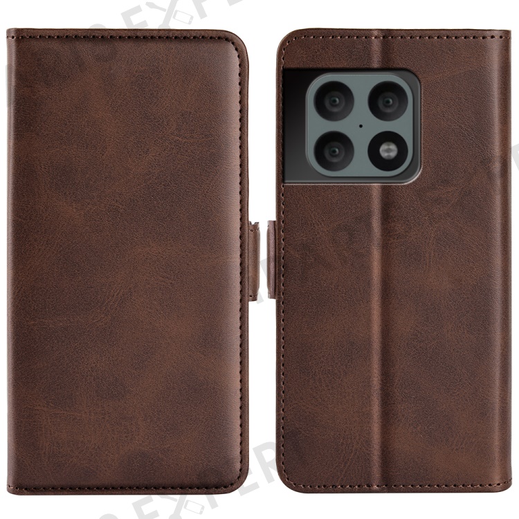 Double Magnetic Clasps Leather Phone Case Wallet Stand Protector Cover for OnePlus 10 Pro 5G - Brown