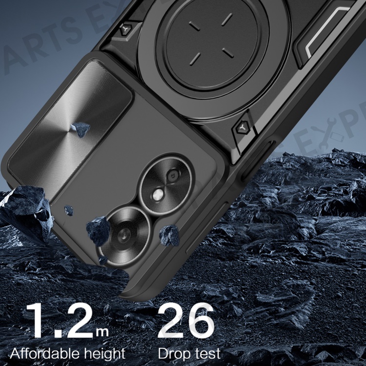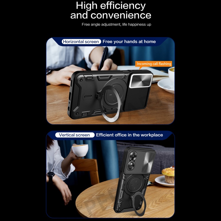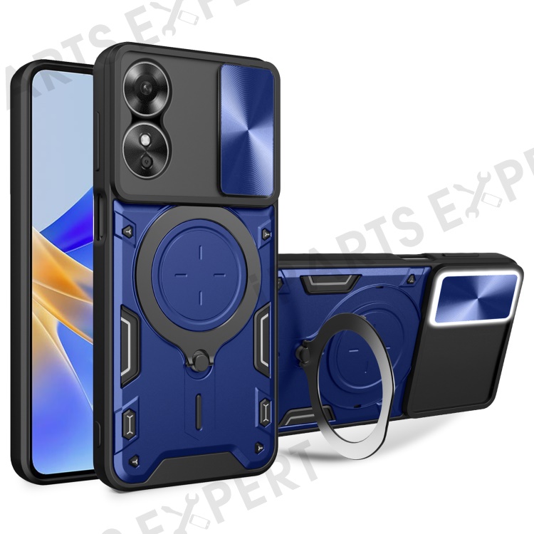 Drop-proof Cover for Oppo A17 4G / A17k 4G Slide Camera Lid PC+TPU Phone Case with Ring Kickstand - Blue