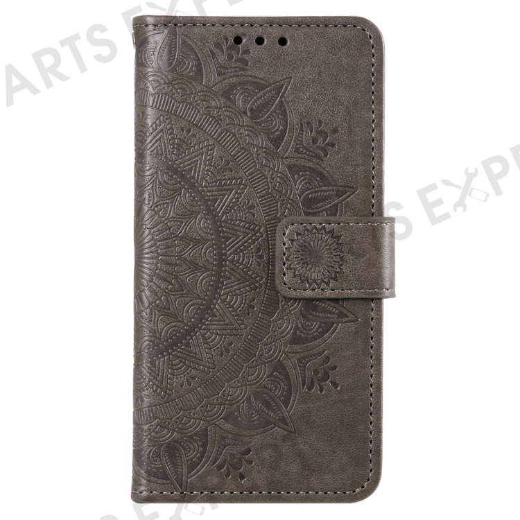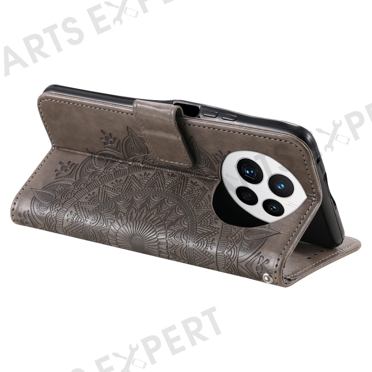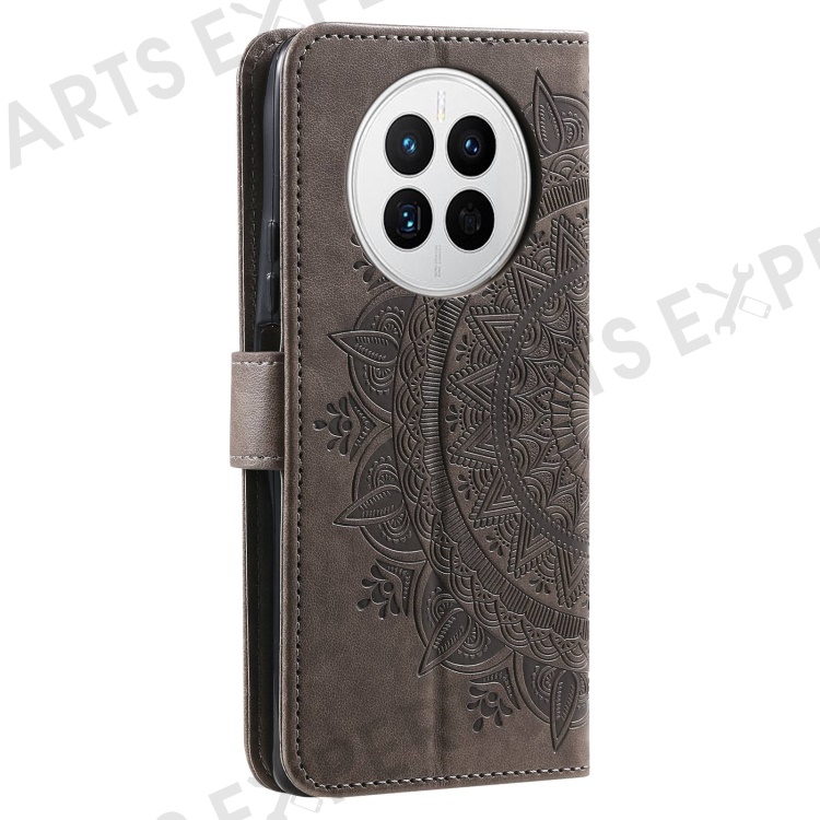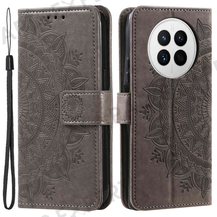 Drop-proof Phone Case For Huawei Mate 50 4G, Mandala Flower Pattern Imprinted PU Leather Anti-wear Flip Wallet Stand Cover - Grey