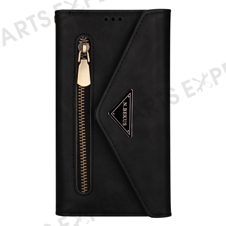 PU Leather Phone Case For Samsung Galaxy A14 5G / A14 4G Zipper Pocket Wallet Stand Cover with Strap - Black