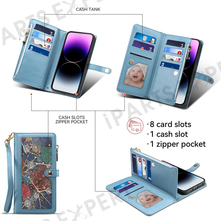 - 【Multifunctional Wallet Design】Includes 8 card slots, a cash slot, and a zipper pocket for cash and coins, ensuring you carry everything you need