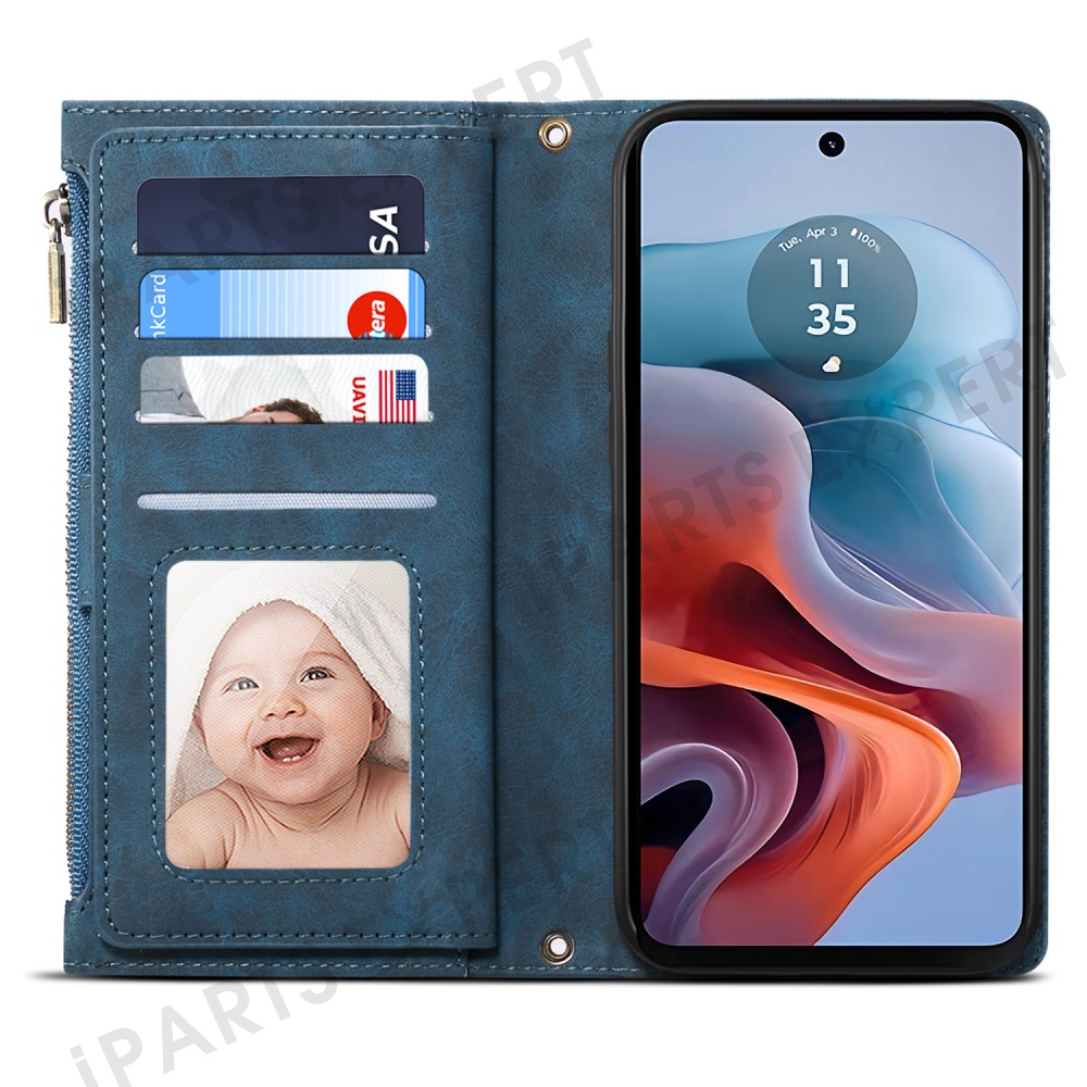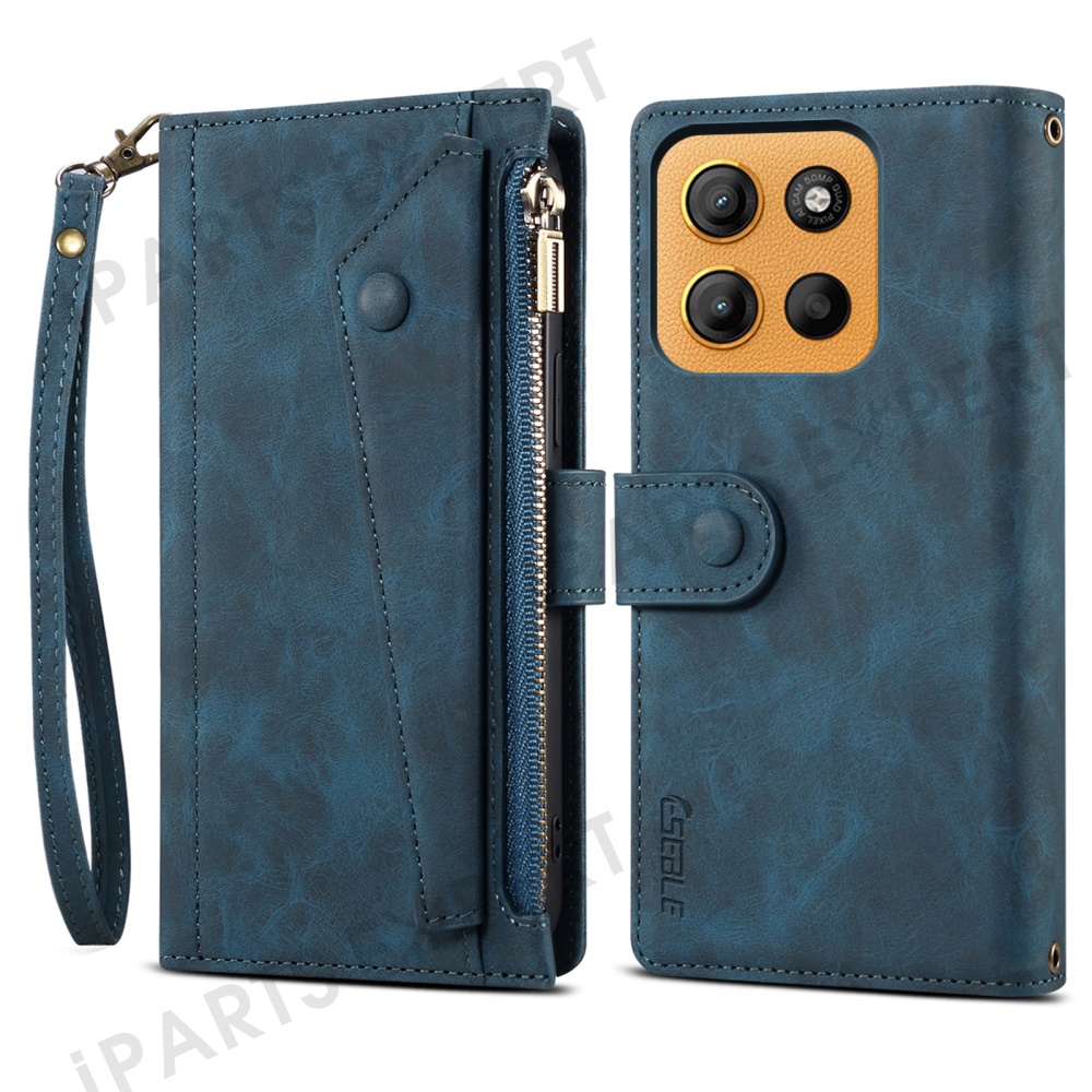 ESEBLE Star Series For Motorola Moto G17 Power 4G / G17 4G / G15 4G Case Zipper Wallet Leather Stand Phone Cover - Blue