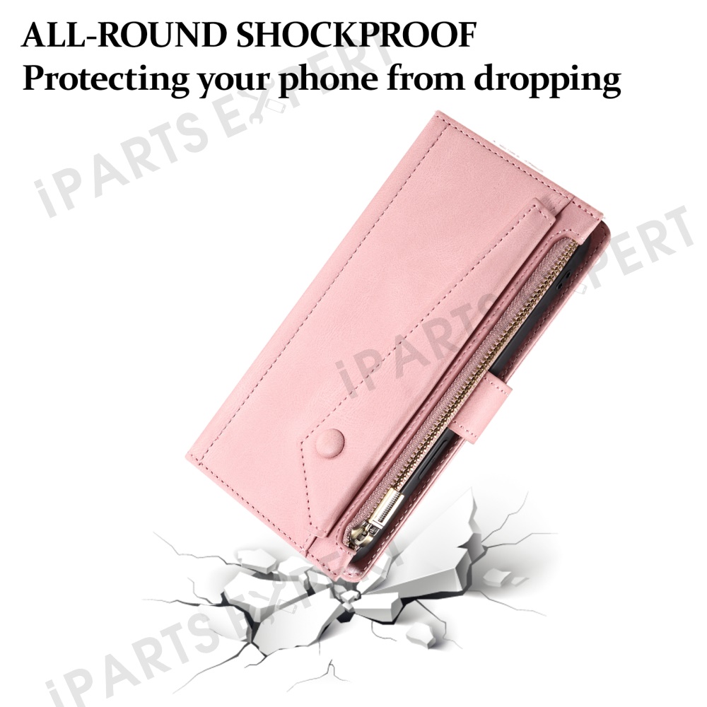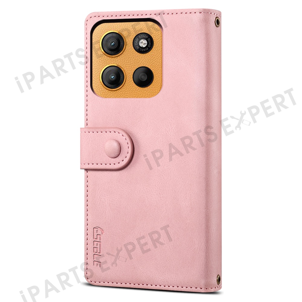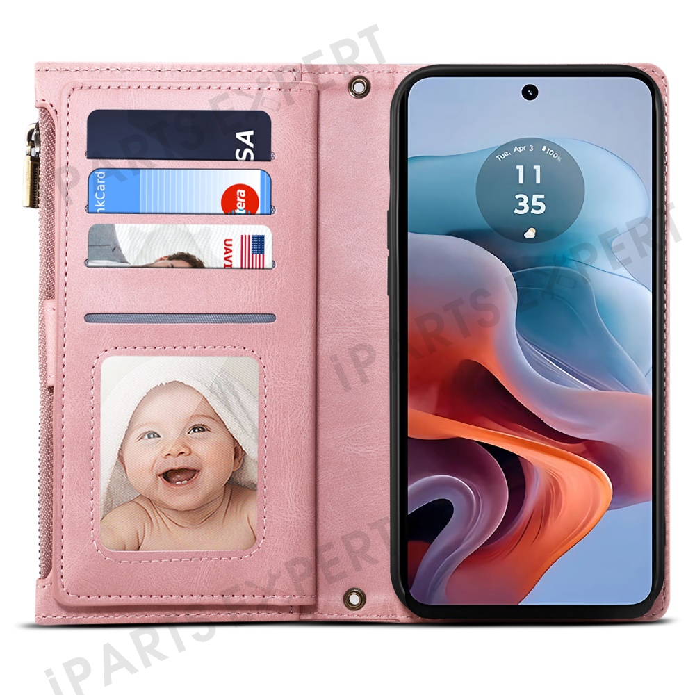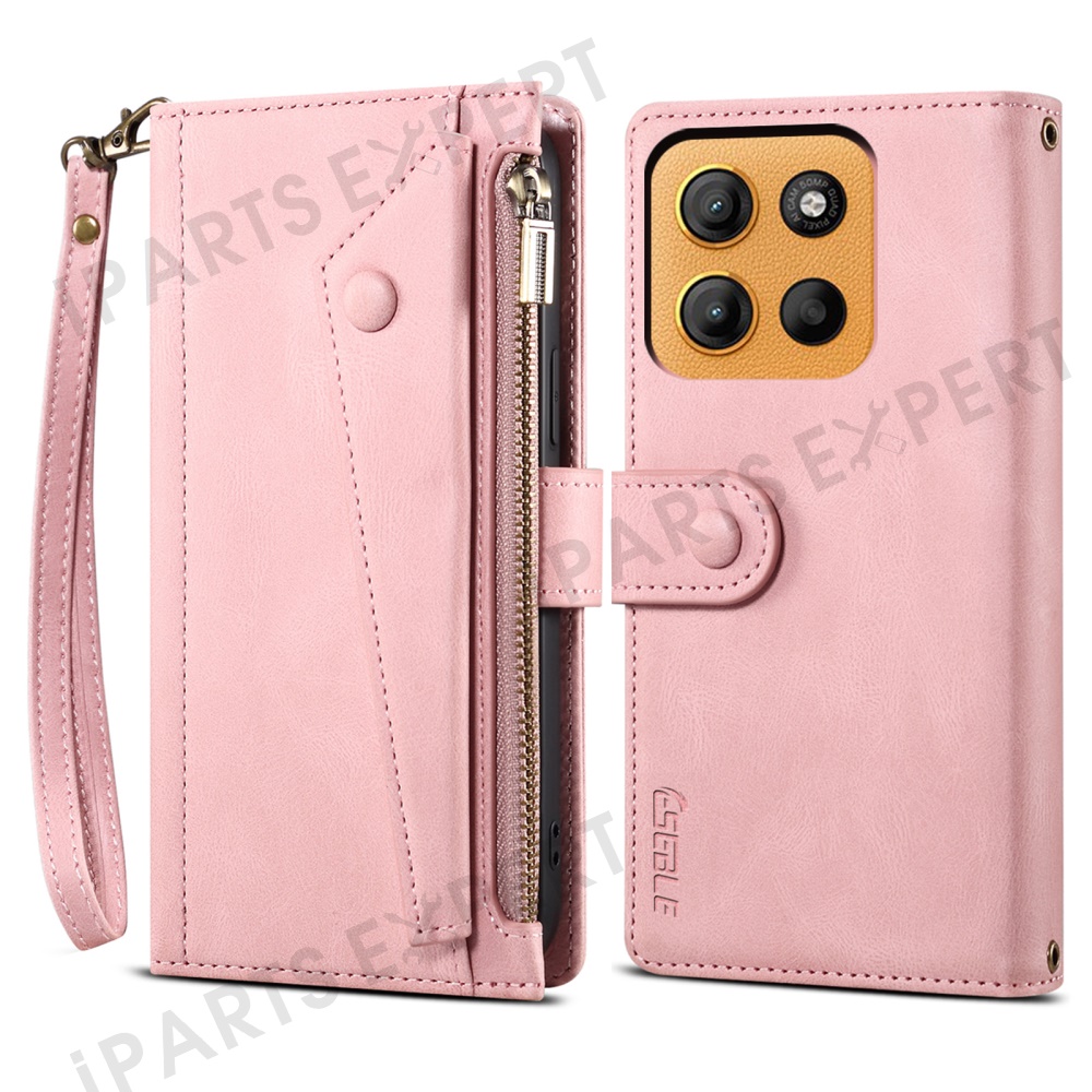 ESEBLE Star Series For Motorola Moto G17 Power 4G / G17 4G / G15 4G Case Zipper Wallet Leather Stand Phone Cover - Rose Gold
