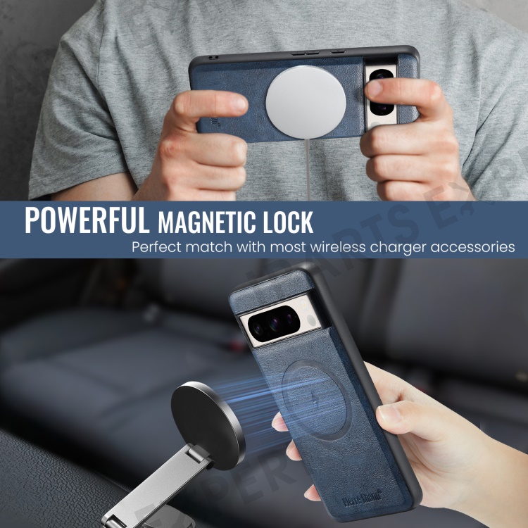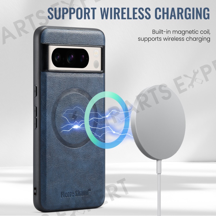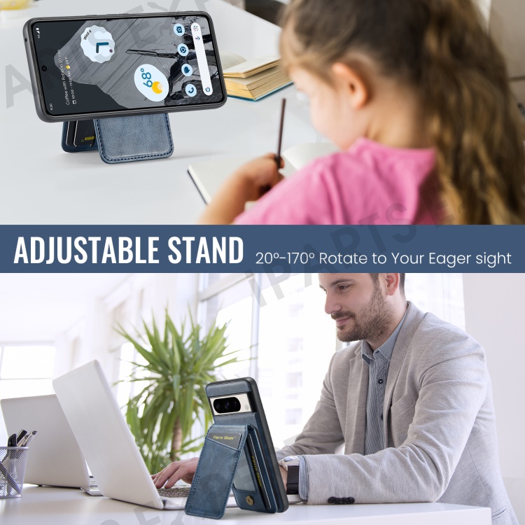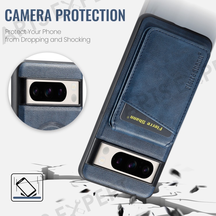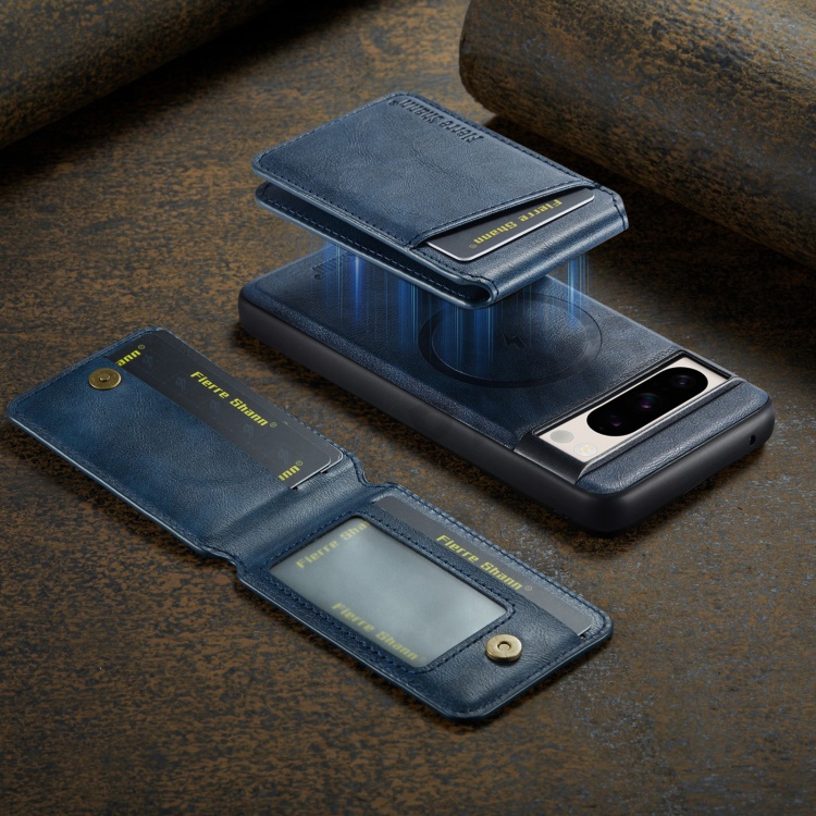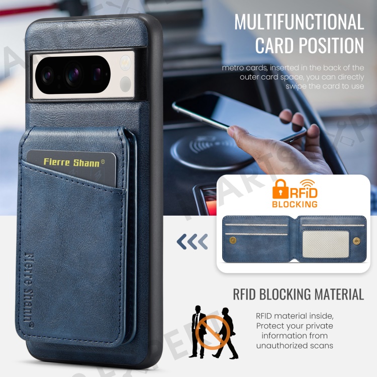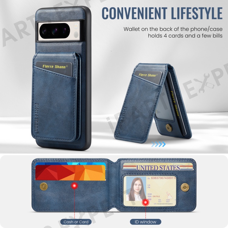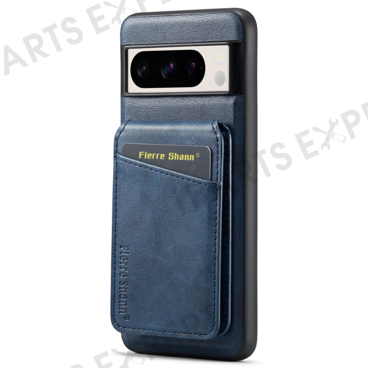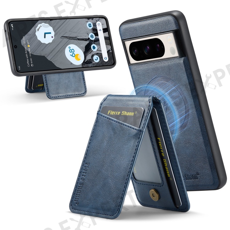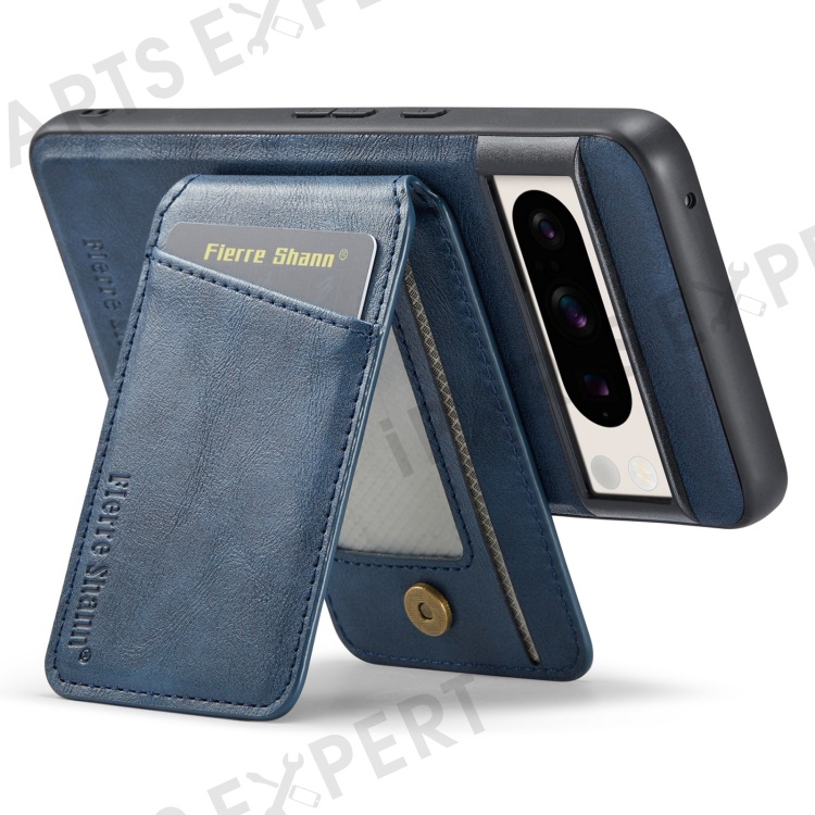 FIERRE SHANN 025 Style For Google Pixel 8 Pro Case PU+TPU Phone Cover with Detachable Card Holder Kickstand - Blue