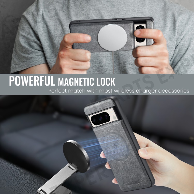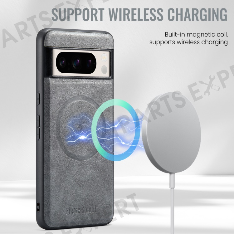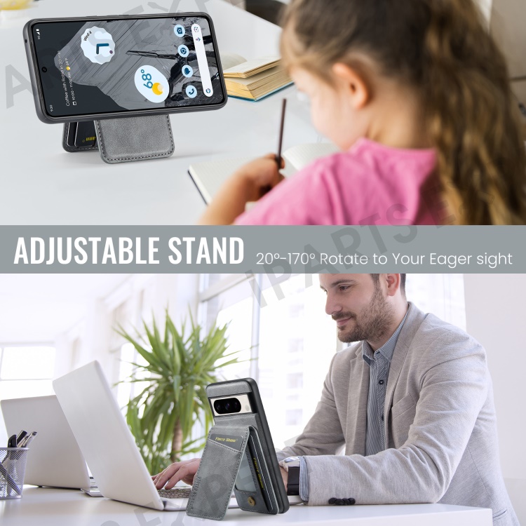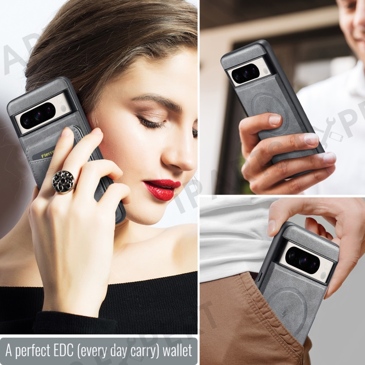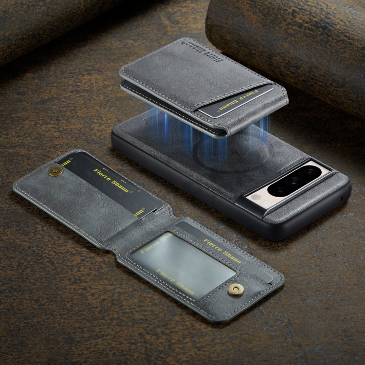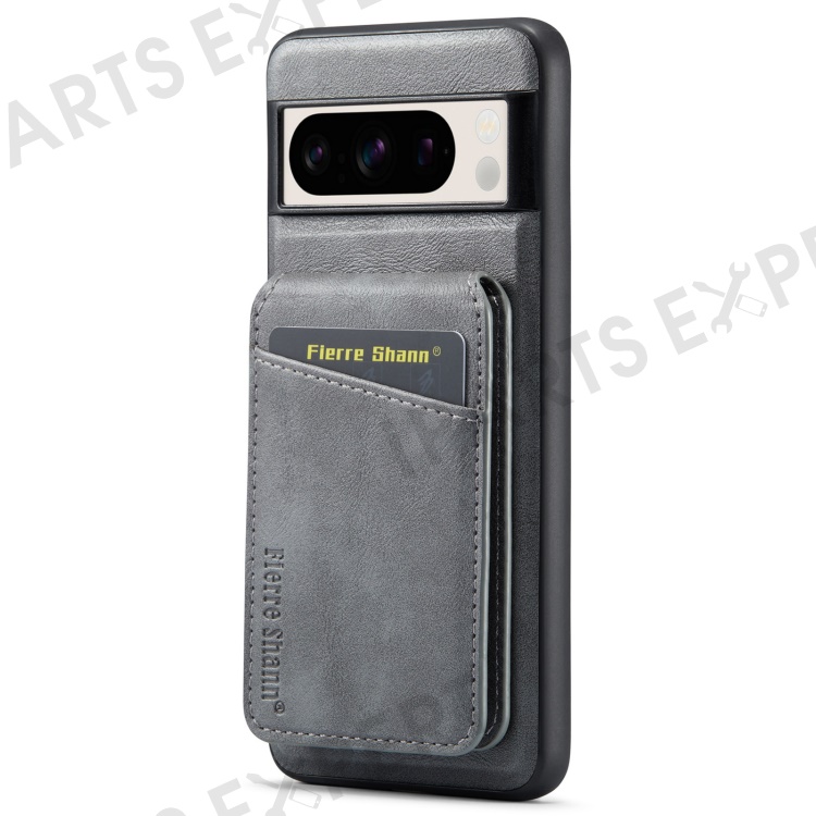 FIERRE SHANN 025 Style For Google Pixel 8 Pro Case PU+TPU Phone Cover with Detachable Card Holder Kickstand - Grey