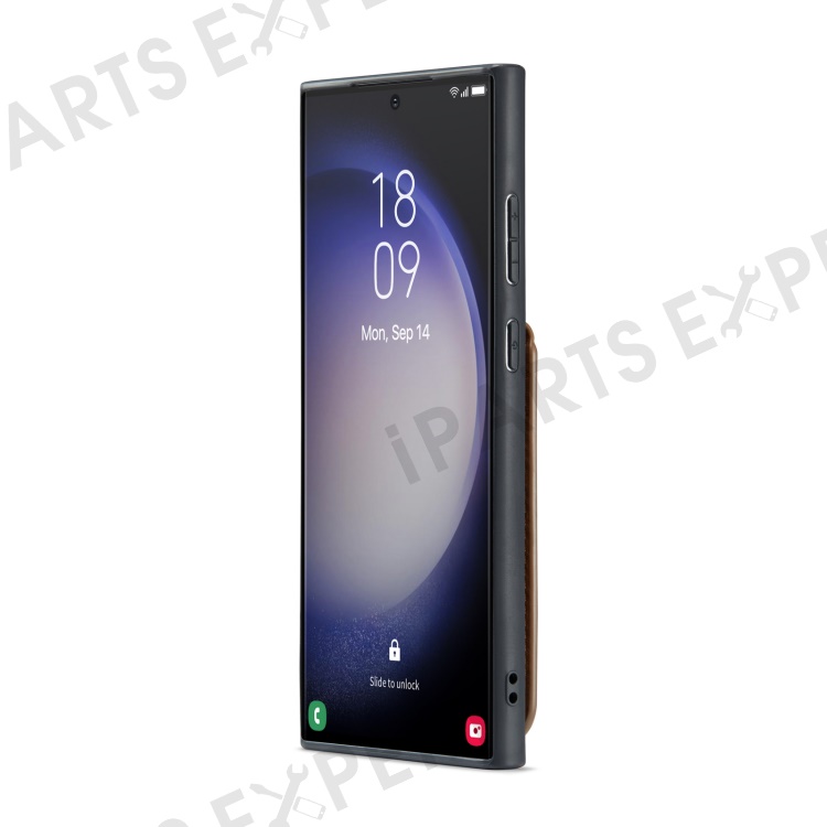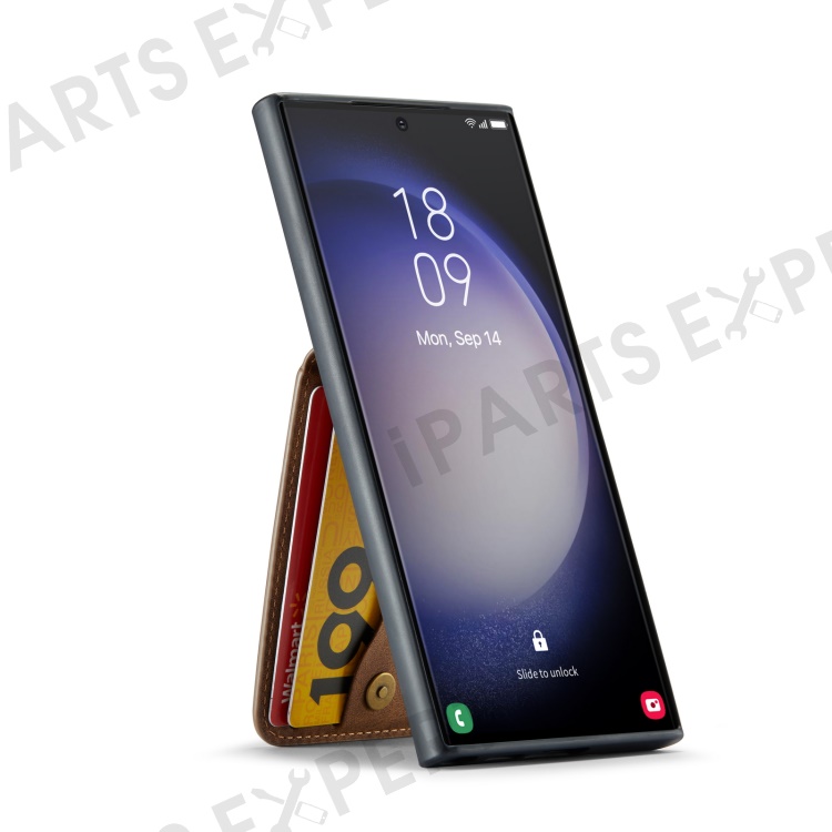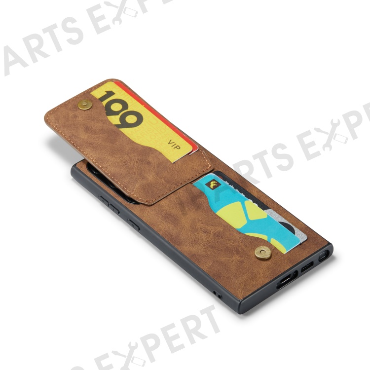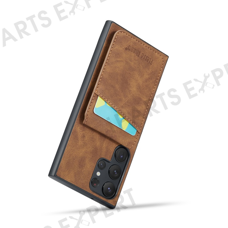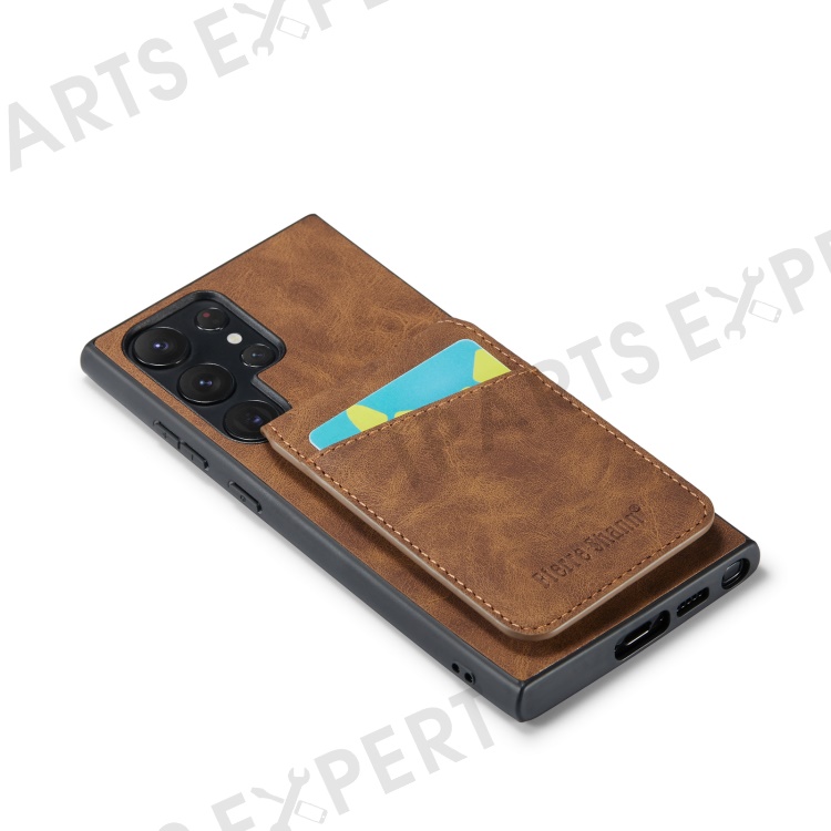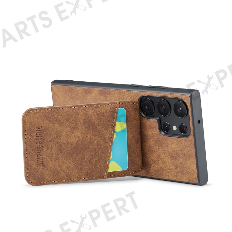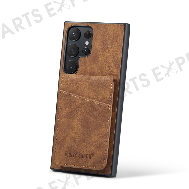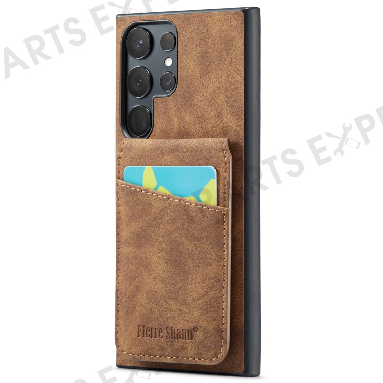 FIERRE SHANN For Samsung Galaxy S24 Ultra Case Crazy Horse Texture Card Slots Phone Cover - Brown