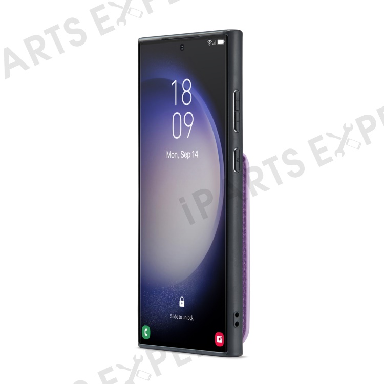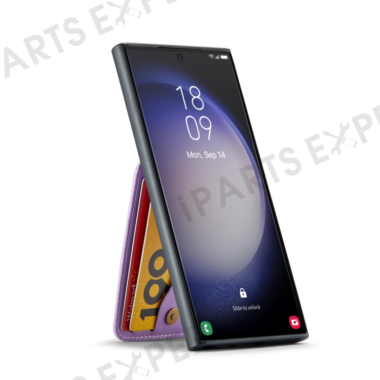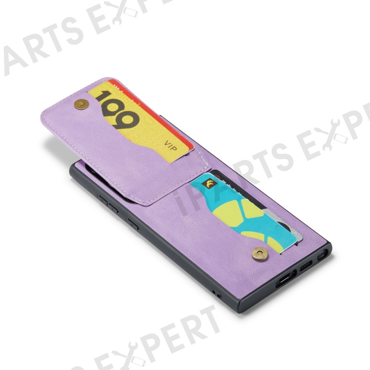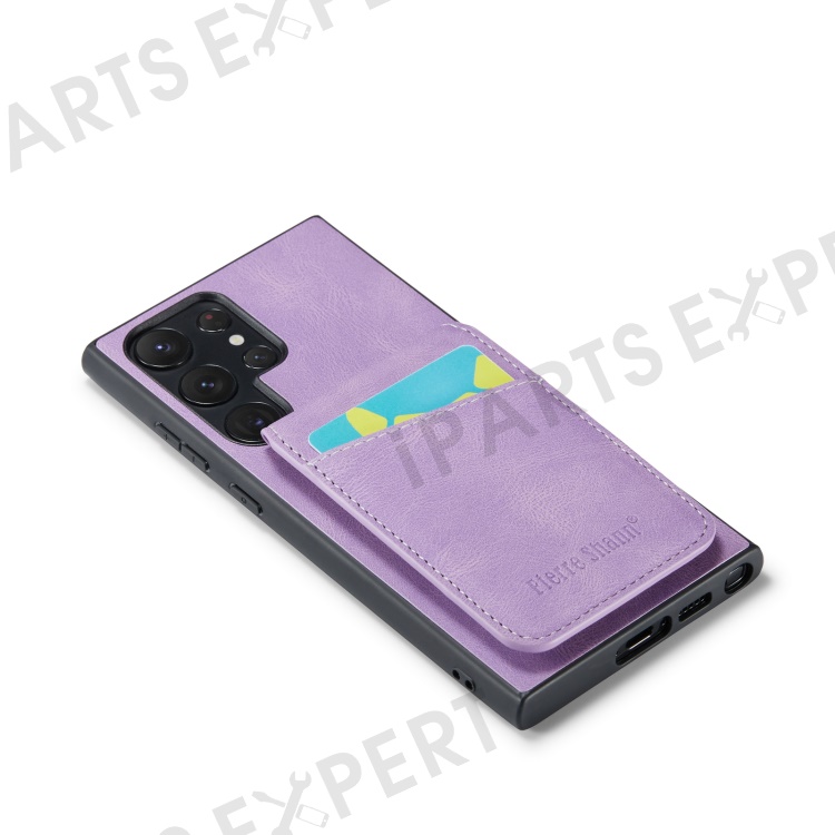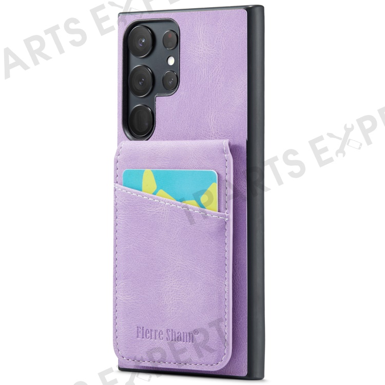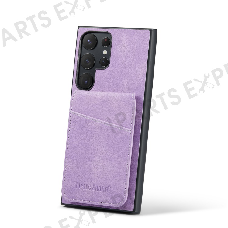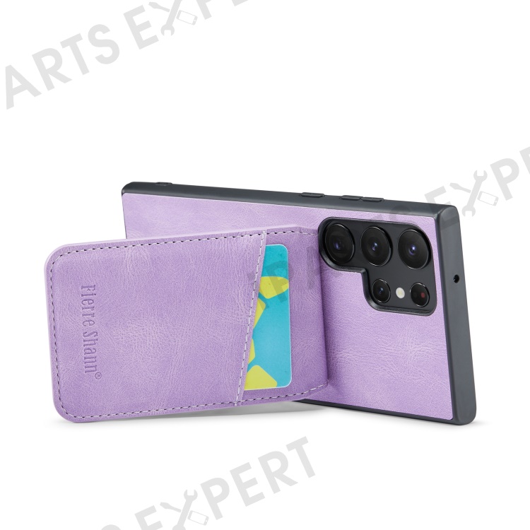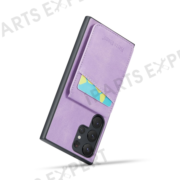FIERRE SHANN For Samsung Galaxy S24 Ultra Case Crazy Horse Texture Card Slots Phone Cover - Purple