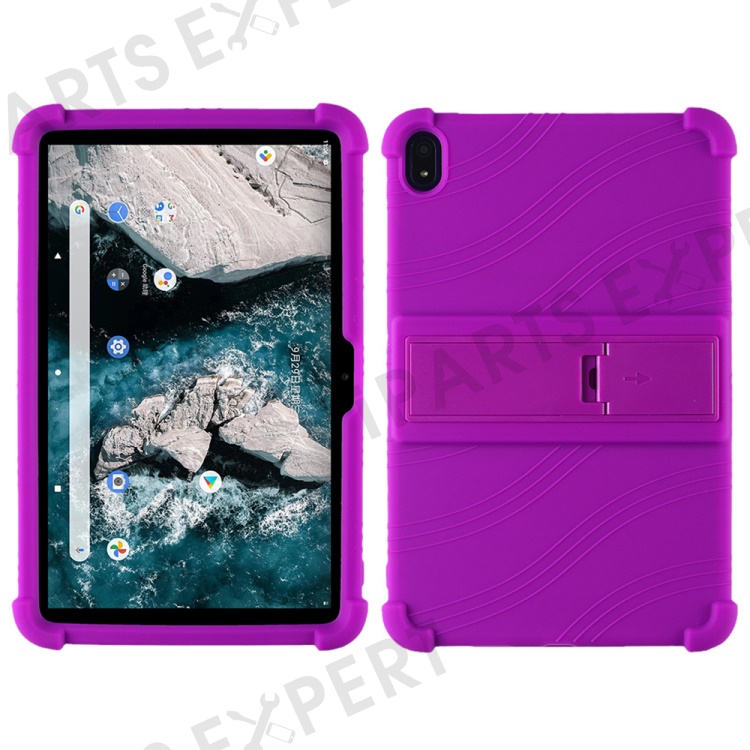Flexible Silicone Tablet Shell for Nokia T20 Cover with Foldable Supporting Kickstand - Purple