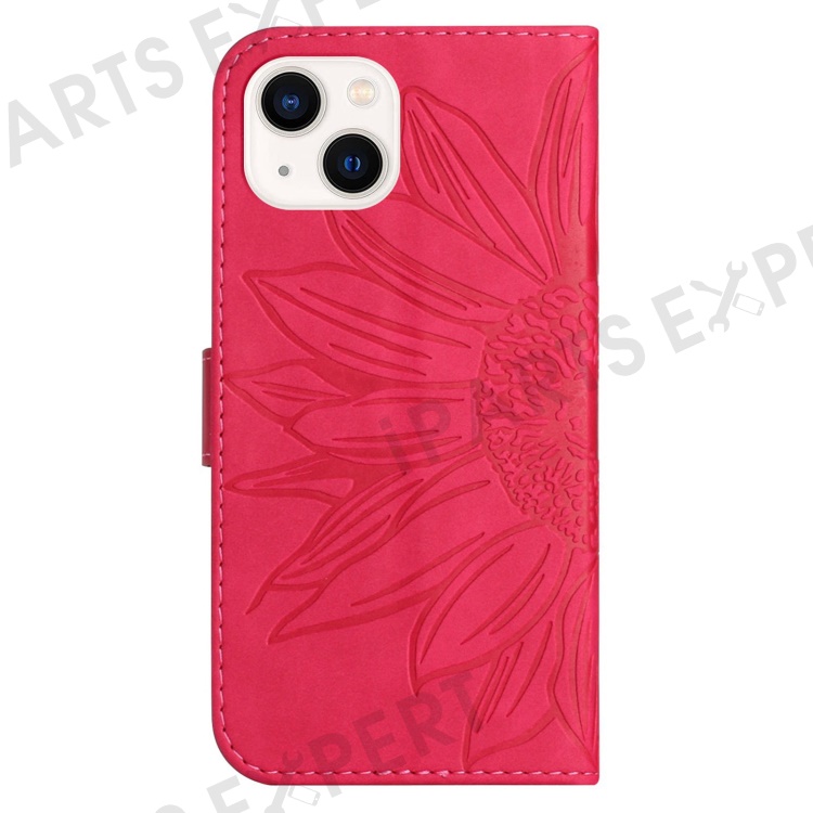 Flip Phone Case for iPhone 14 Plus, HT04 Imprinted Sunflower Viewing Stand PU Leather Skin-Touch Magnetic Wallet Cover with Strap - Rose