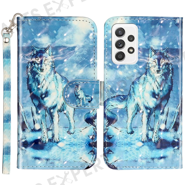 Folio Flip Pattern Printing Scratch Proof Leather Wallet Phone Case Cover with Stand for Samsung Galaxy A33 5G - Wolf