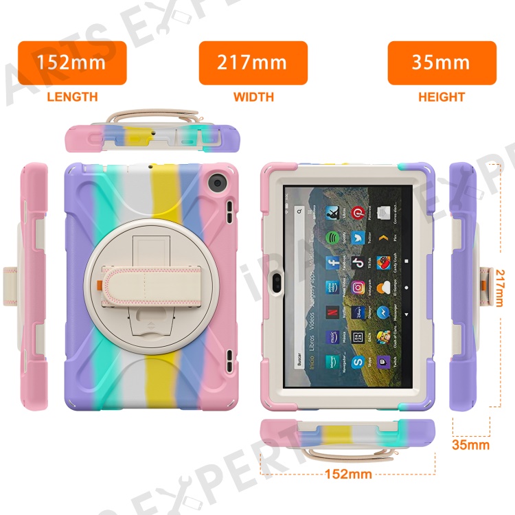 For Amazon Fire HD 8 (2022) / HD 8 (2024) Kickstand PC + Silicone Tablet Case 360 Degree Rotation Hand Strap Drop Resistant Rugged Protective Cover - Colorful Pink