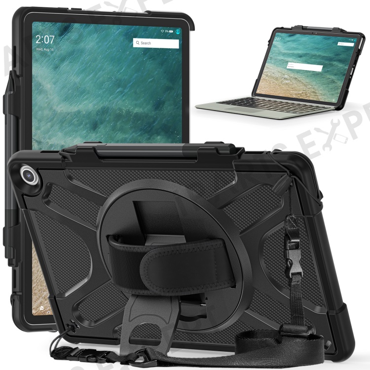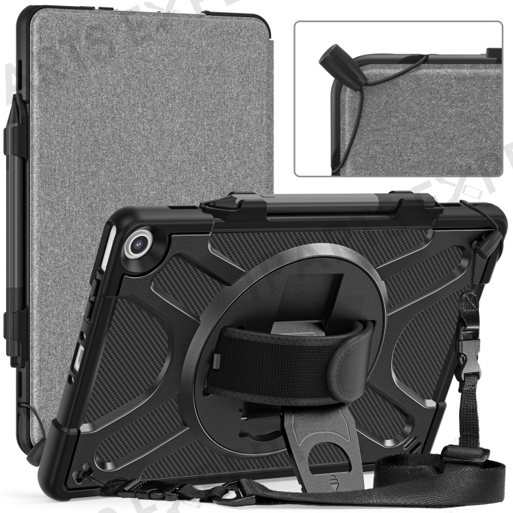 For Amazon Fire Max 11 Case Rugged Kickstand Hand Strap Tablet Cover with Shoulder Strap - Black