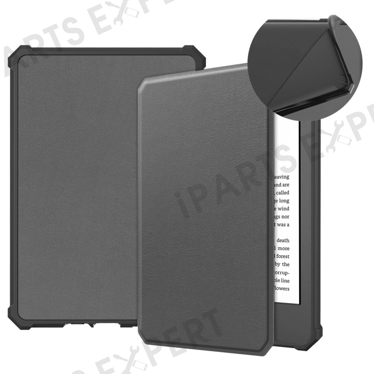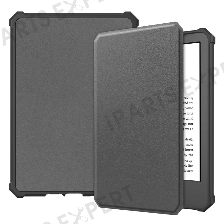 For Amazon Kindle 6 inch (2024) / (2022) PU Leather + TPU Case Full Protection E-Reader Cover with Auto Sleep / Wake - Grey