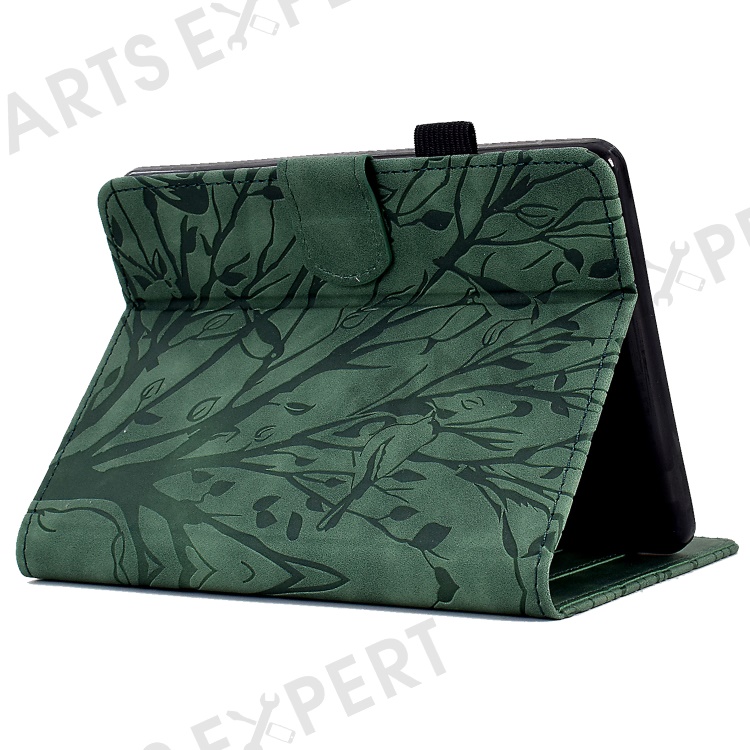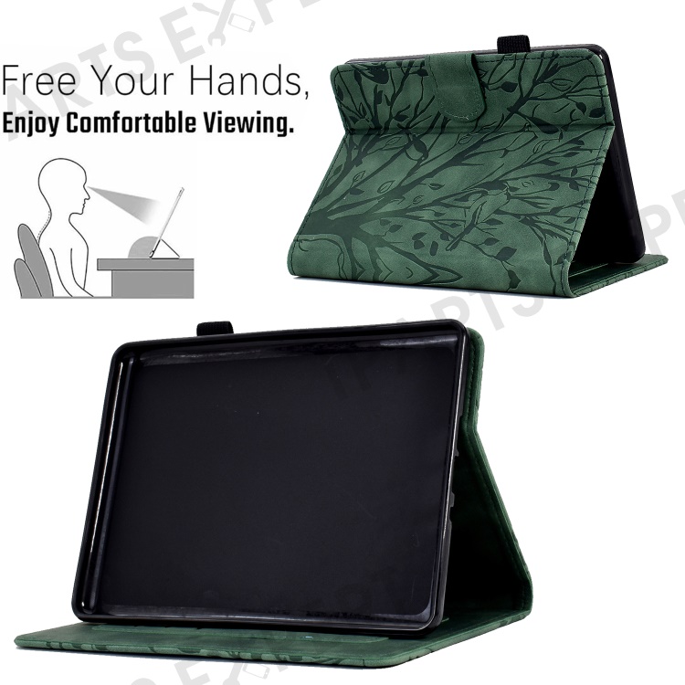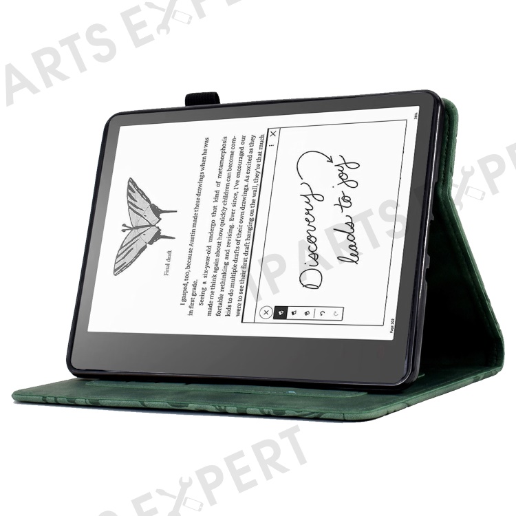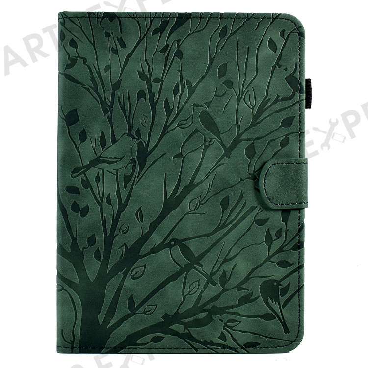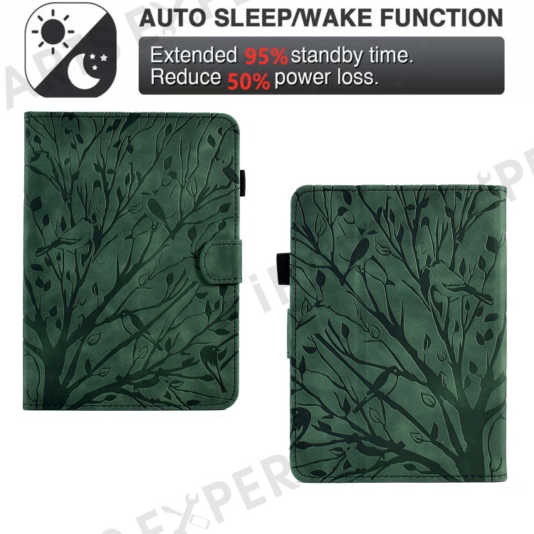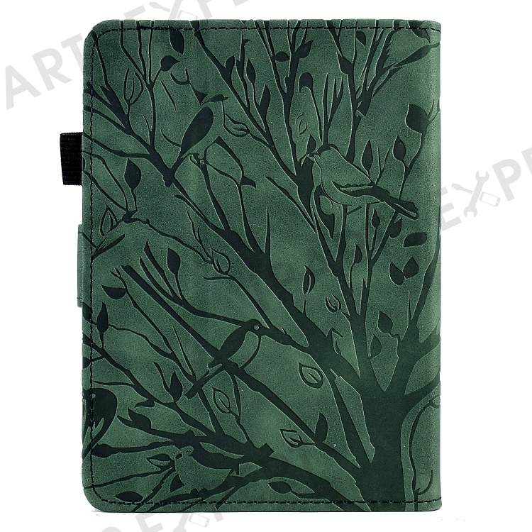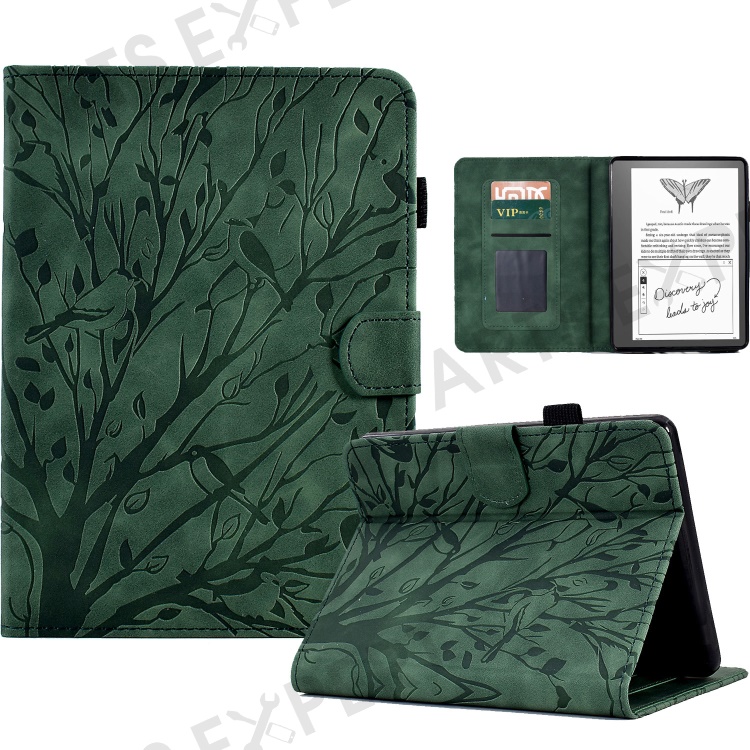 For Amazon Kindle 11th (2024) / 6'' (2022) Leather E-Reader Case Imprinted Tree Stand Card Holder Cover - Green