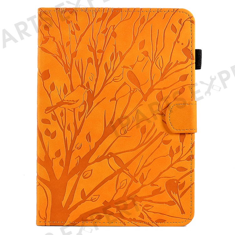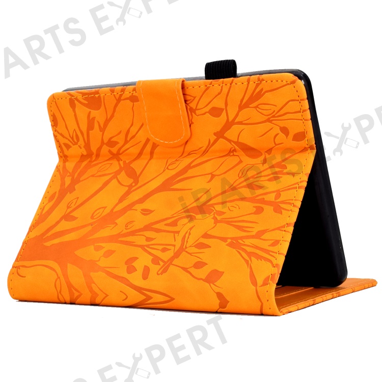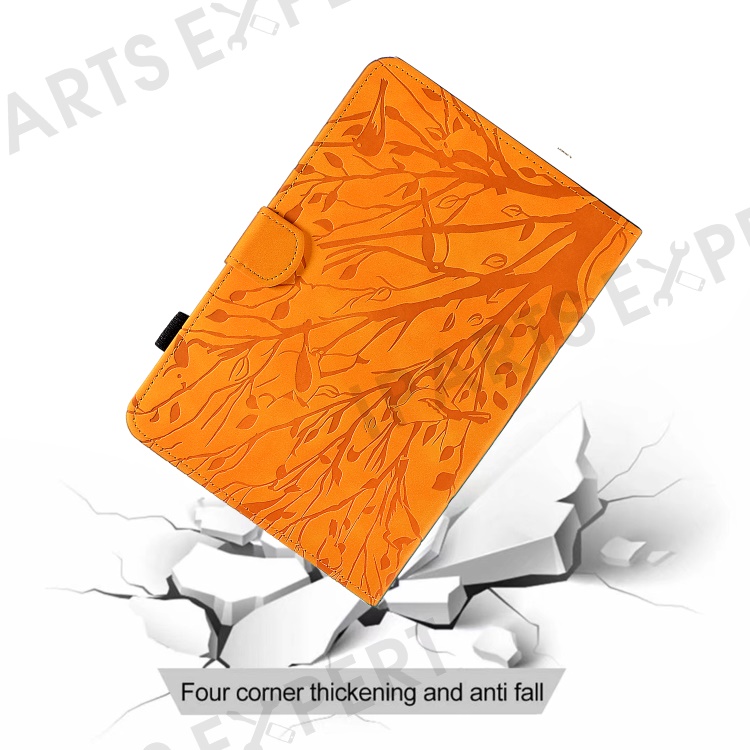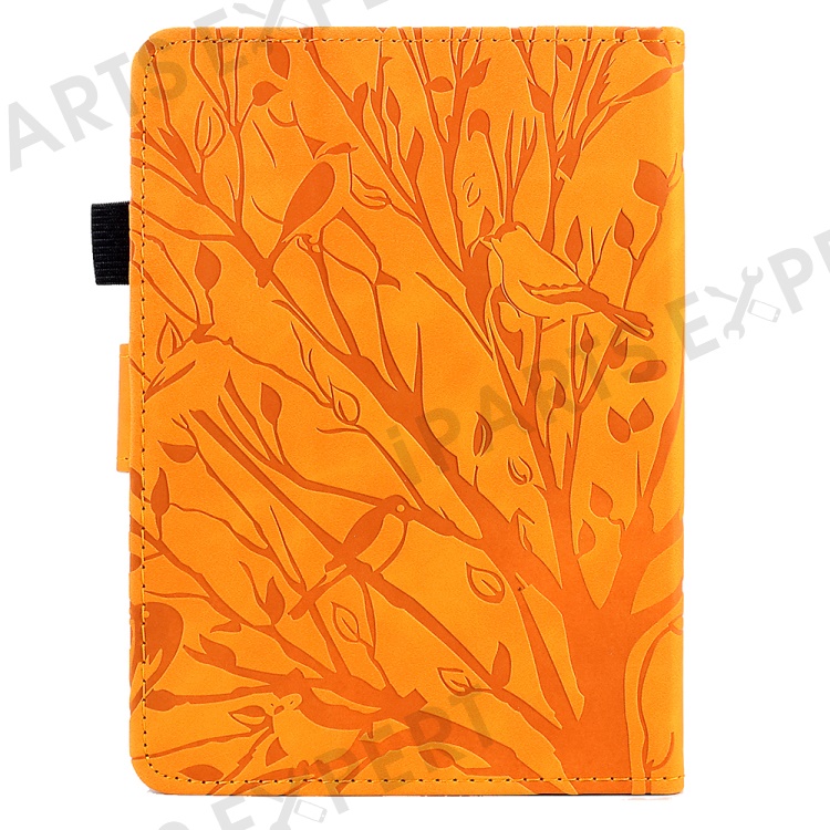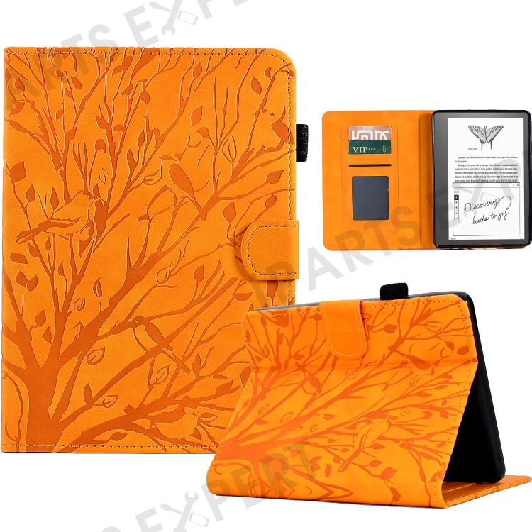 For Amazon Kindle 11th (2024) / 6'' (2022) Leather E-Reader Case Imprinted Tree Stand Card Holder Cover - Khaki
