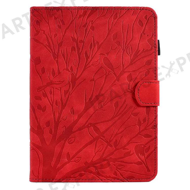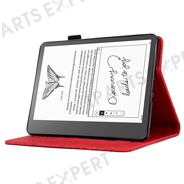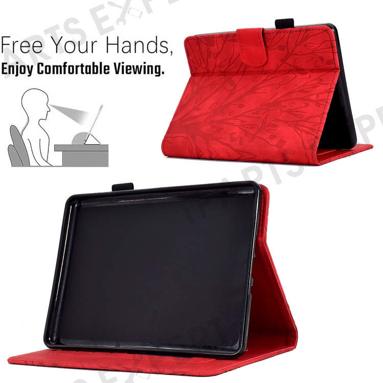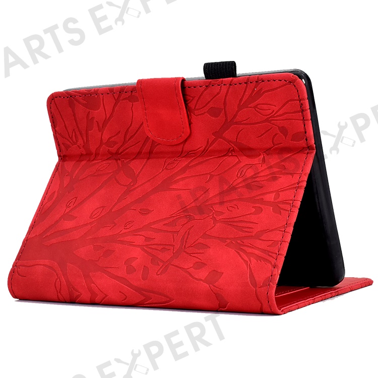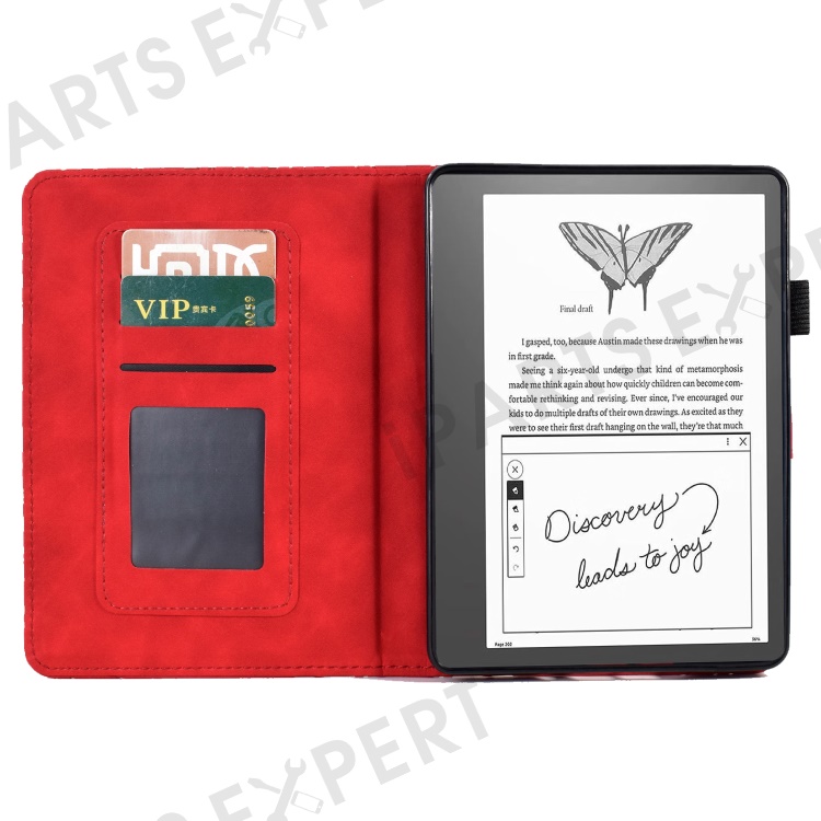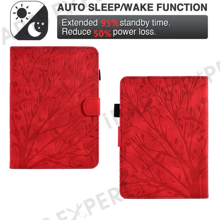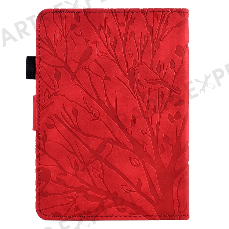 For Amazon Kindle 11th (2024) / 6'' (2022) Leather E-Reader Case Imprinted Tree Stand Card Holder Cover - Red