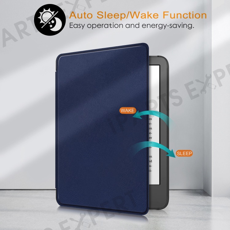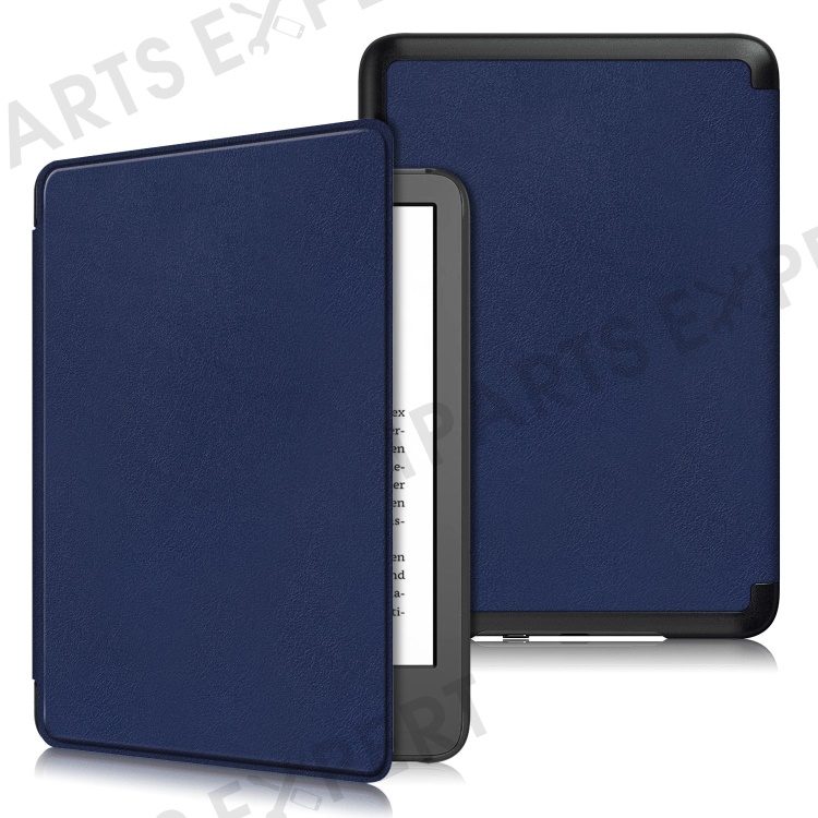 For Amazon Kindle 6" (2022) PU Leather Folio Case Auto Sleep / Wake Feature Solid Color Tablet Cover - Dark Blue