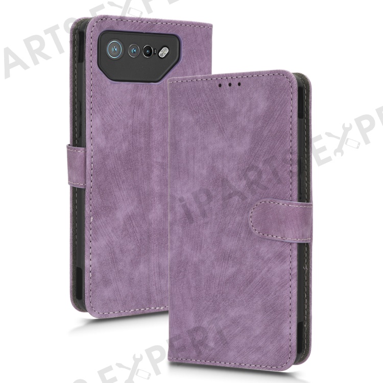 For Asus ROG Phone 7 5G Phone Wallet Case RFID Blocking Stand Phone Cover with Strap - Purple