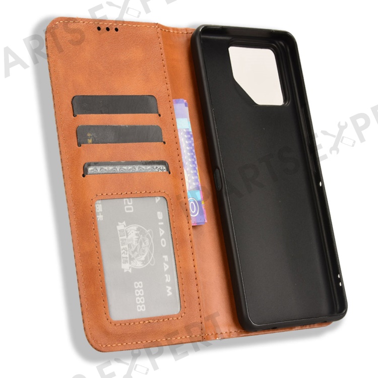 For Asus ROG Phone 8 Pro 5G / 8 5G Case Magnetic Closing Wallet Leather Phone Cover - Brown