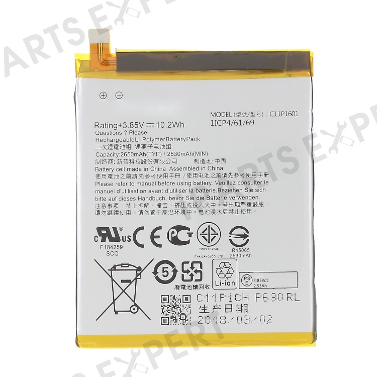 For Asus Zenfone 3 ZE520KL 3.85V 2650mAh Rechargeable Li-ion Polymer Battery Replacement Part (C11P1601) (without Logo)