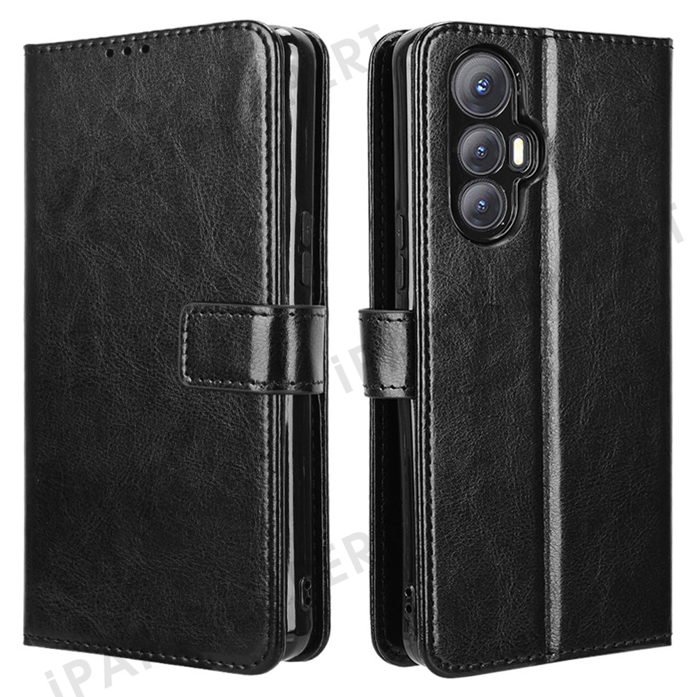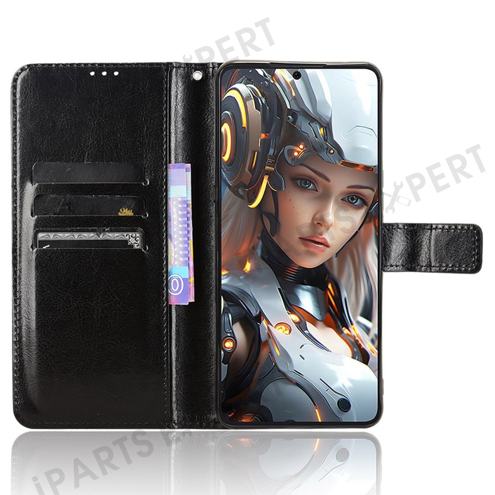 For Cubot Max 5 Case Crazy Horse Texture PU Leather Phone Wallet Cover - Black
