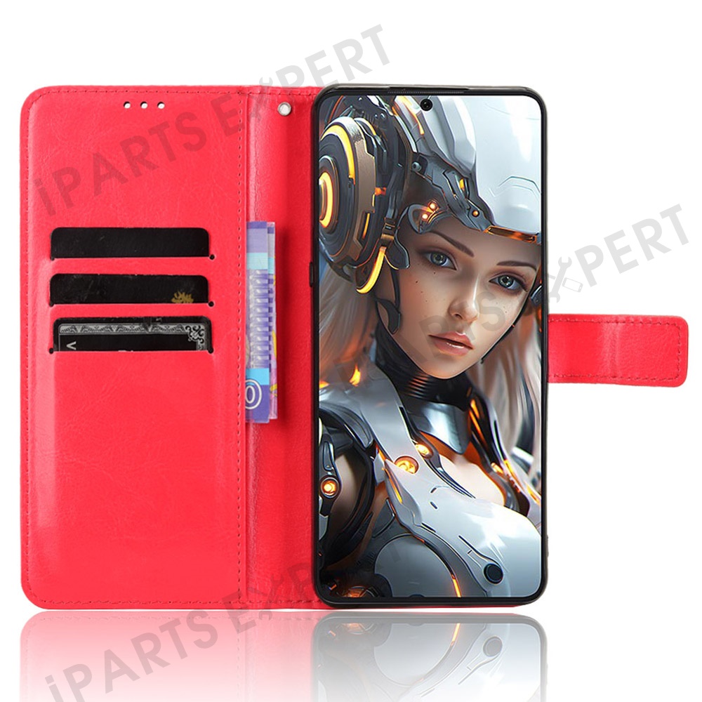 For Cubot Max 5 Case Crazy Horse Texture PU Leather Phone Wallet Cover - Red