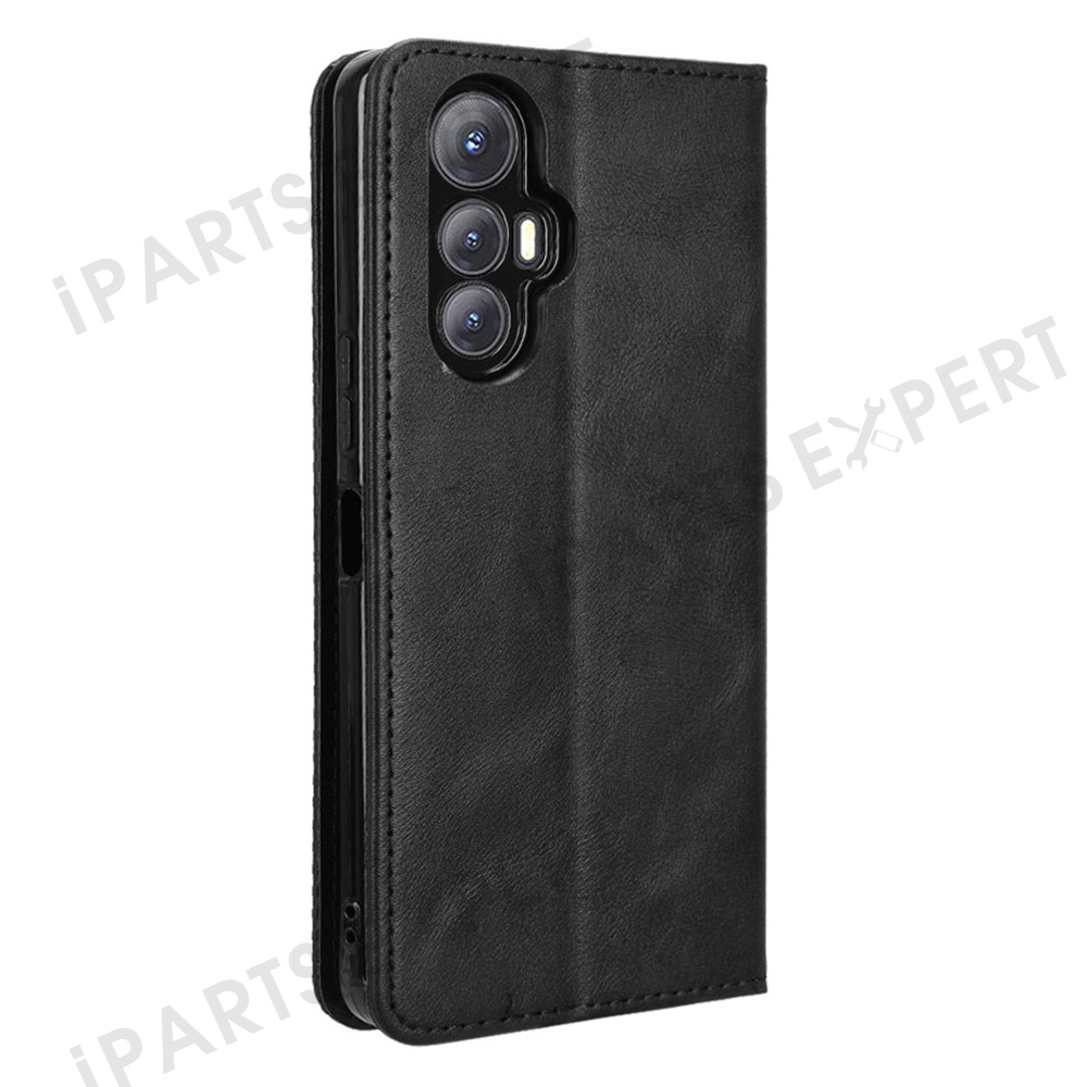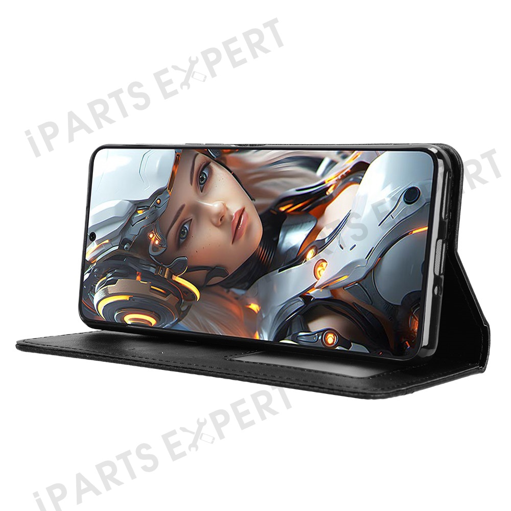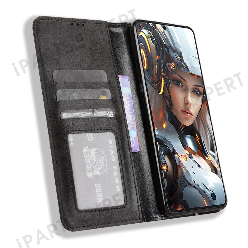 For Cubot Max 5 Leather Case Wallet Stand Retro Texture Phone Cover - Black