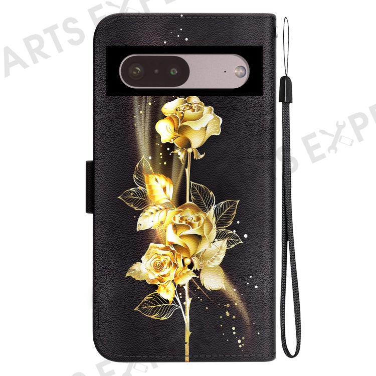 For Google Pixel 7 Pro 5G Case Pattern PU Leather Folio Stand Phone Cover - Gold Butterfly Rose