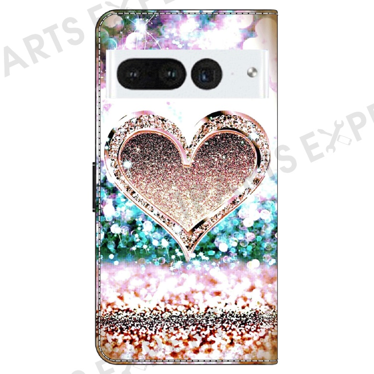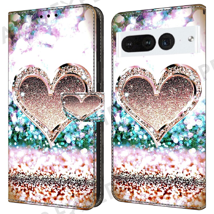For Google Pixel 7 Pro 5G PU Leather Stand Cover 3D Pattern Printed Flip Wallet Phone Case - Pink Diamond Heart