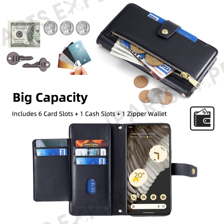 - 【Massive Storage Capacity】 Includes 6 card slots, 1 cash pocket, and 1 zippered coin wallet—ideal for organizing cards, bills, coins, and small essentials