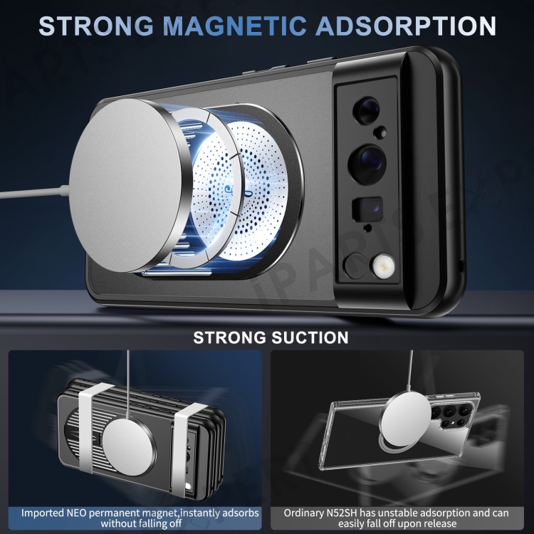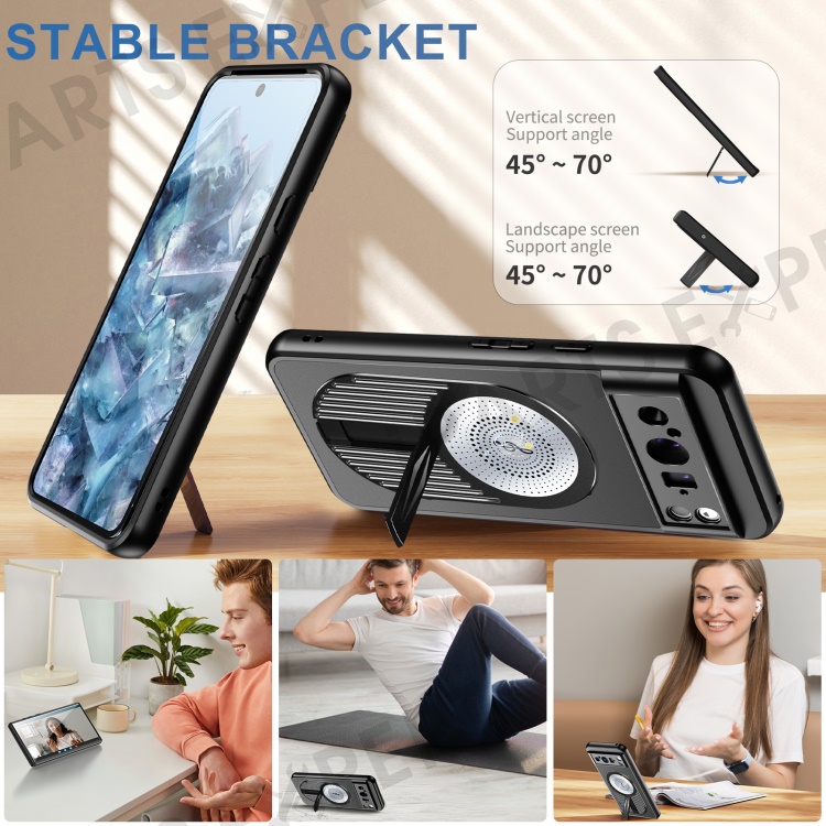 For Google Pixel 8 Pro Magnetic Case Heat Dissipation Aromatherapy Kickstand Silicone+PC Phone Cover - Black