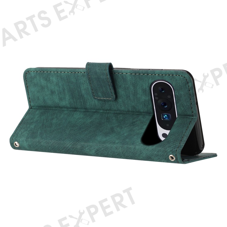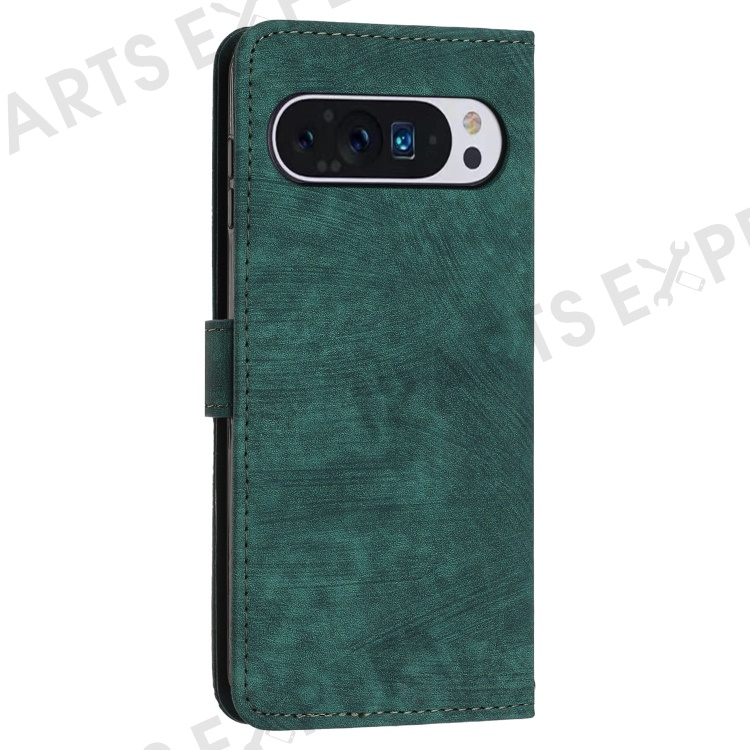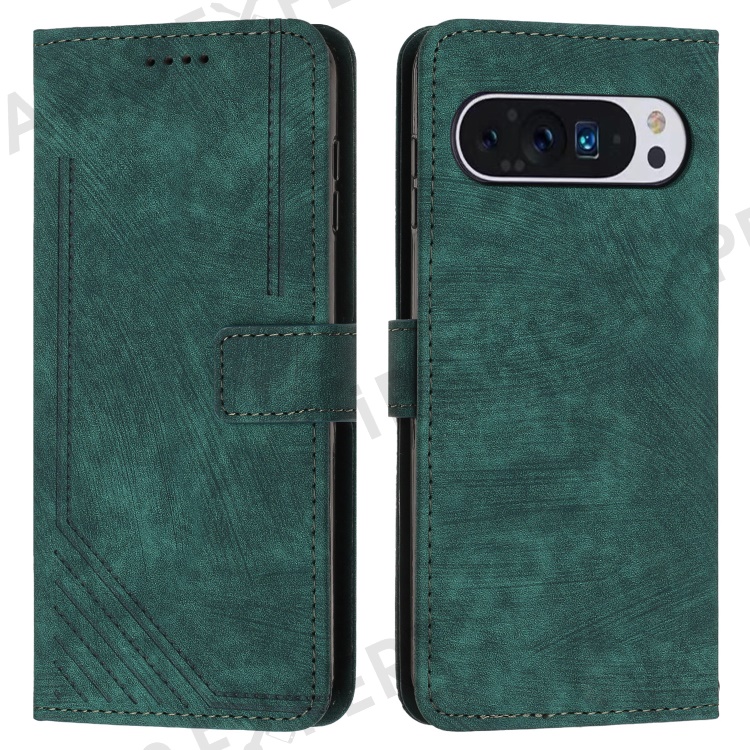 For Google Pixel 10 Pro / 10 / 9 Pro / 9 Case Lines Leather Skin-Touch Phone Cover Stand Function - Green