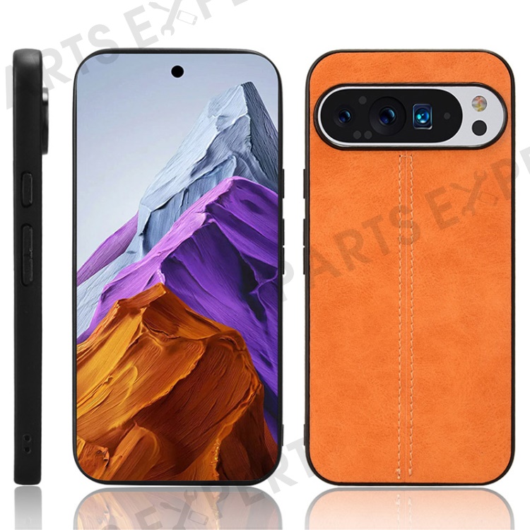 For Google Pixel 9 Pro XL Case Leather+TPU+PC Phone Cover Stitching Line - Orange