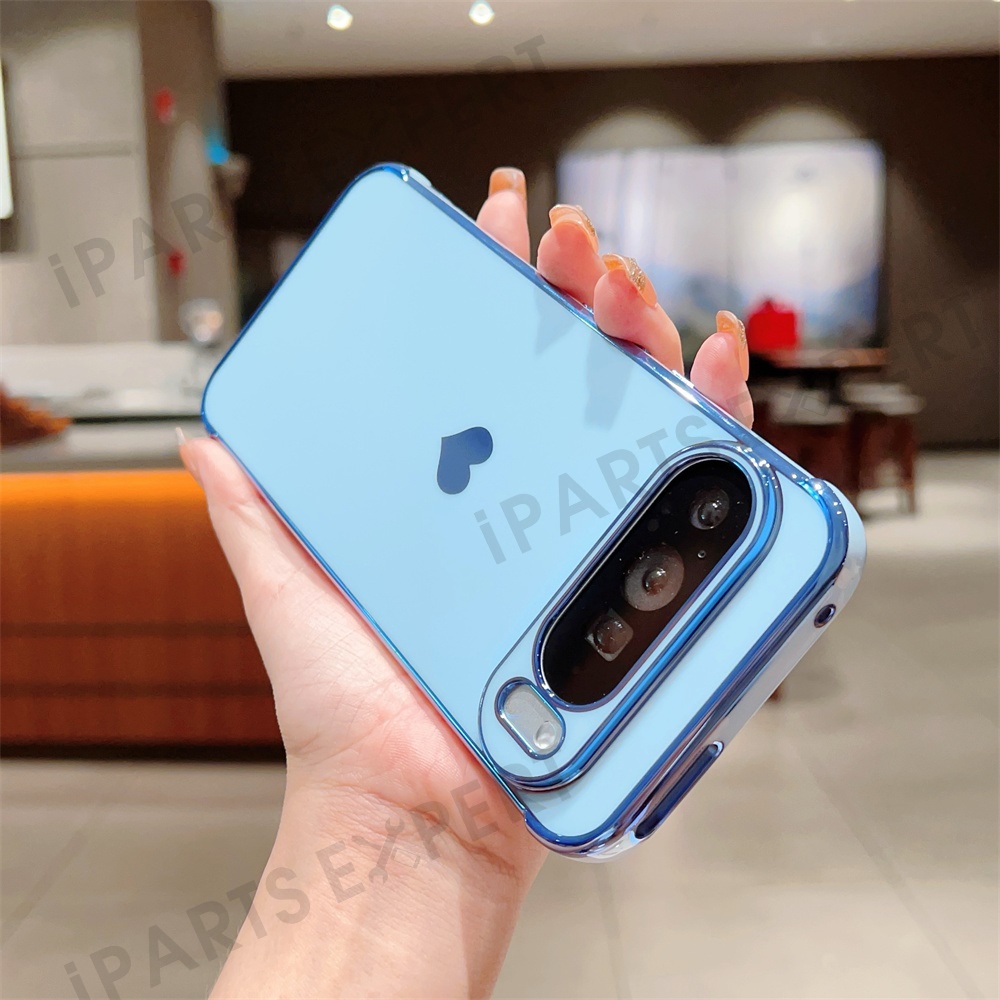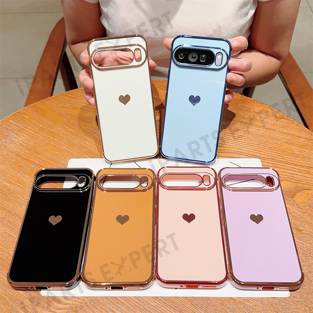 For Google Pixel 9 Pro XL Case TPU Phone Back Cover Electroplating Heart Pattern - Blue