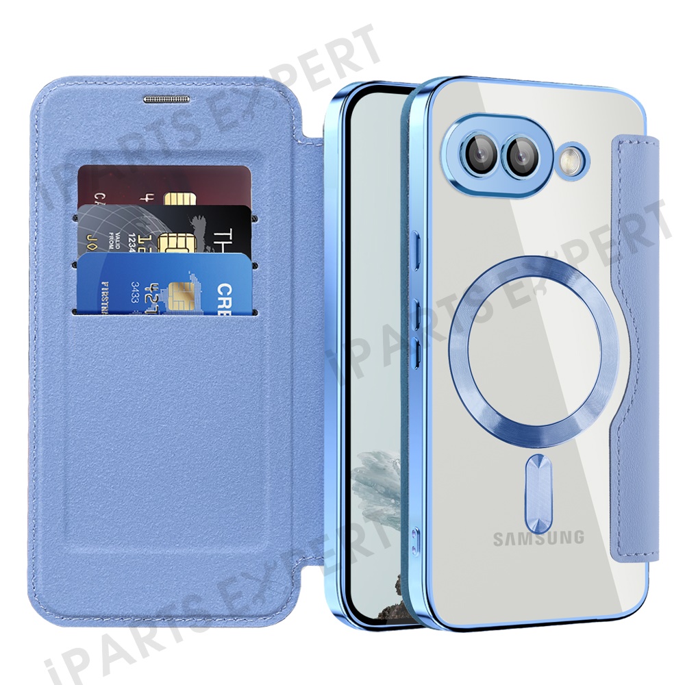 For Google Pixel 9a Magnetic Case Rhombus PU Leather Phone Cover - Blue