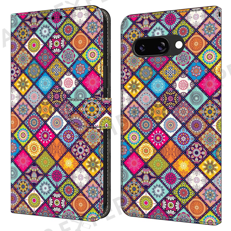 For Google Pixel 9a Case Pattern Printed Protective Cover TPU+PU Leather Flip Phone Case - Colorful Leather