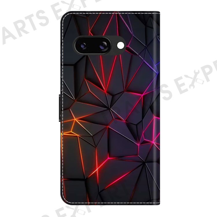 For Google Pixel 9a Case Pattern Printed Protective Cover TPU+PU Leather Flip Phone Case - Red Cracks