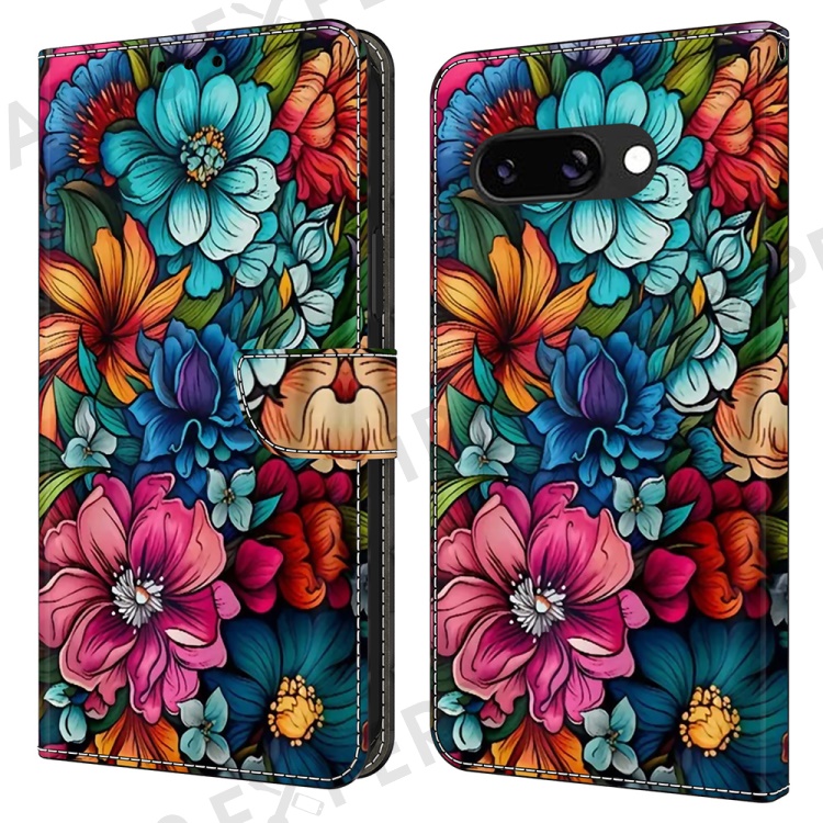 For Google Pixel 9a Case Pattern Printed Protective Cover TPU+PU Leather Flip Phone Case - Staphyllum