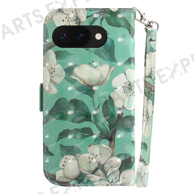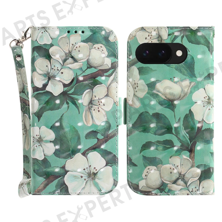 For Google Pixel 9a Case Pattern Printing Leather Wallet Phone Cover with Wrist Strap - Watercolor Flowers