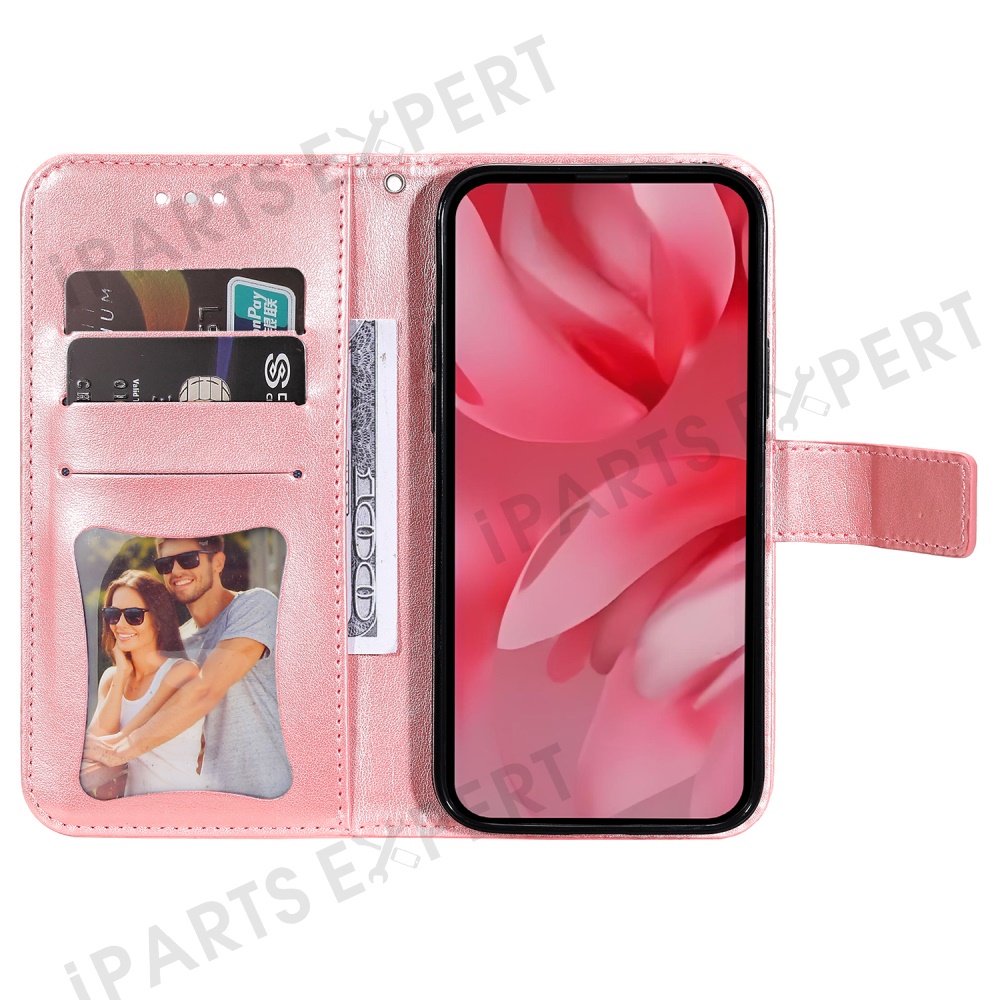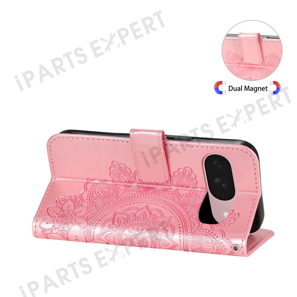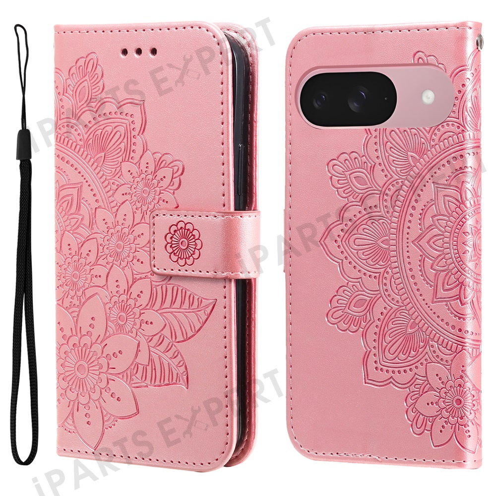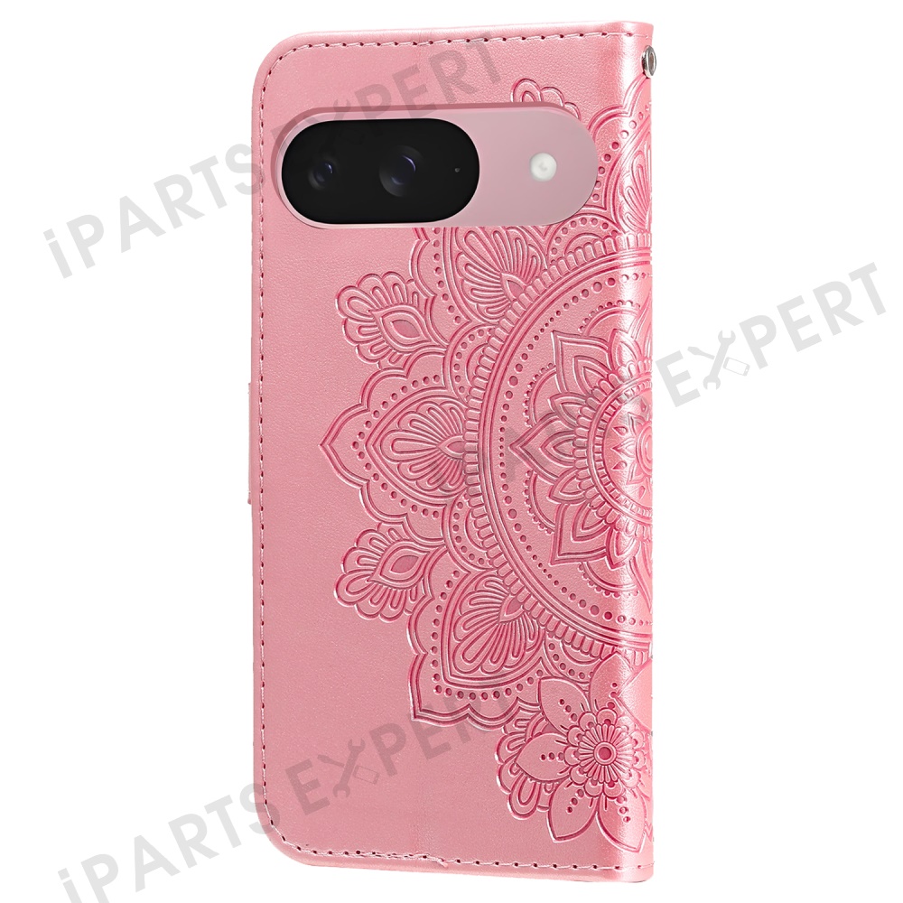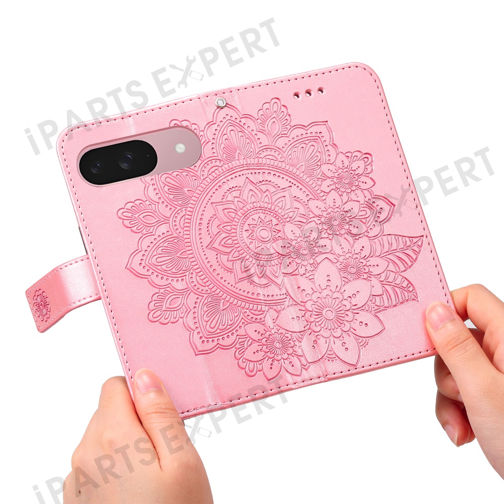For Google Pixel 9a Case Floral Pattern PU Leather Wallet Stand Phone Cover - Pink