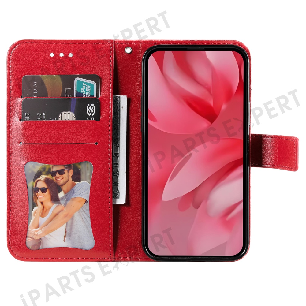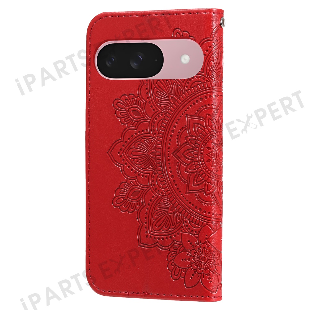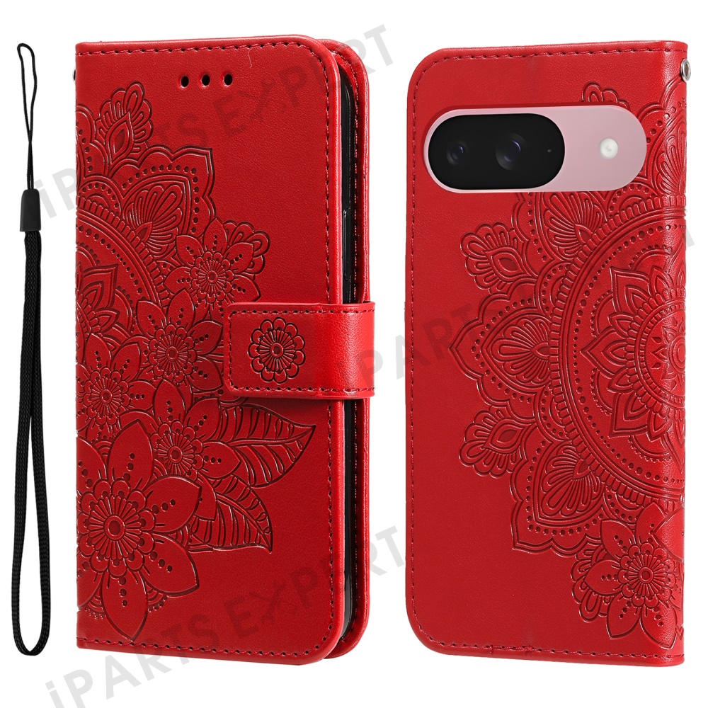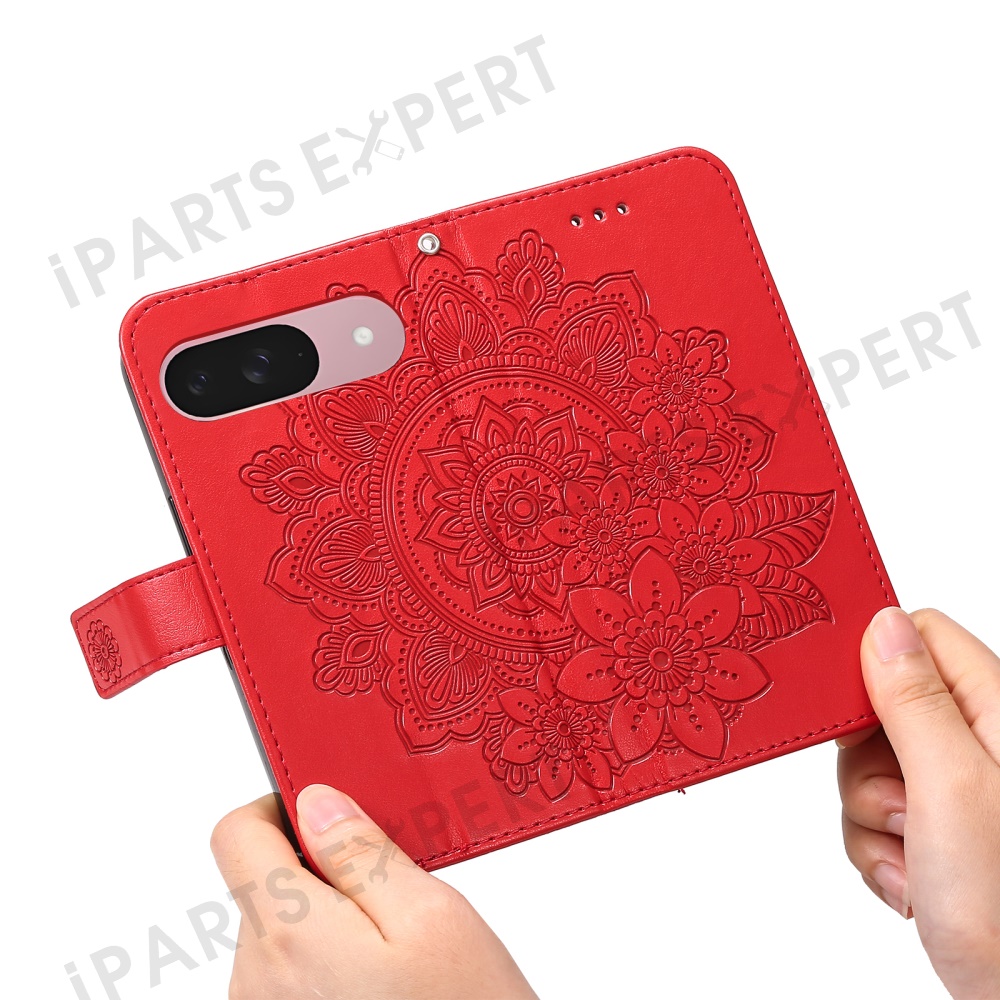 For Google Pixel 9a Case Floral Pattern PU Leather Wallet Stand Phone Cover - Red