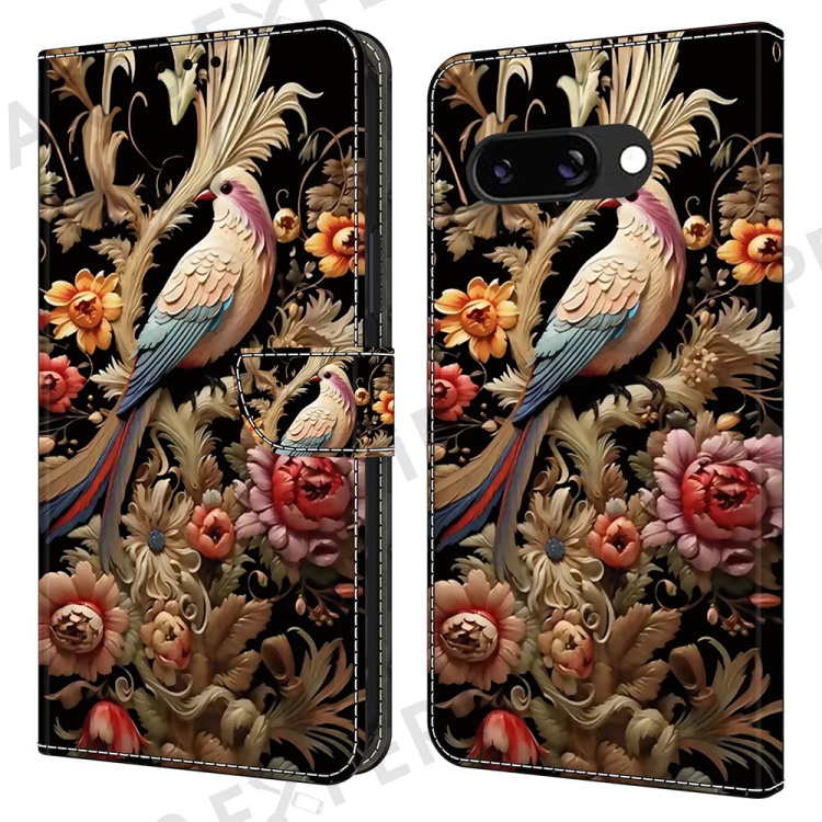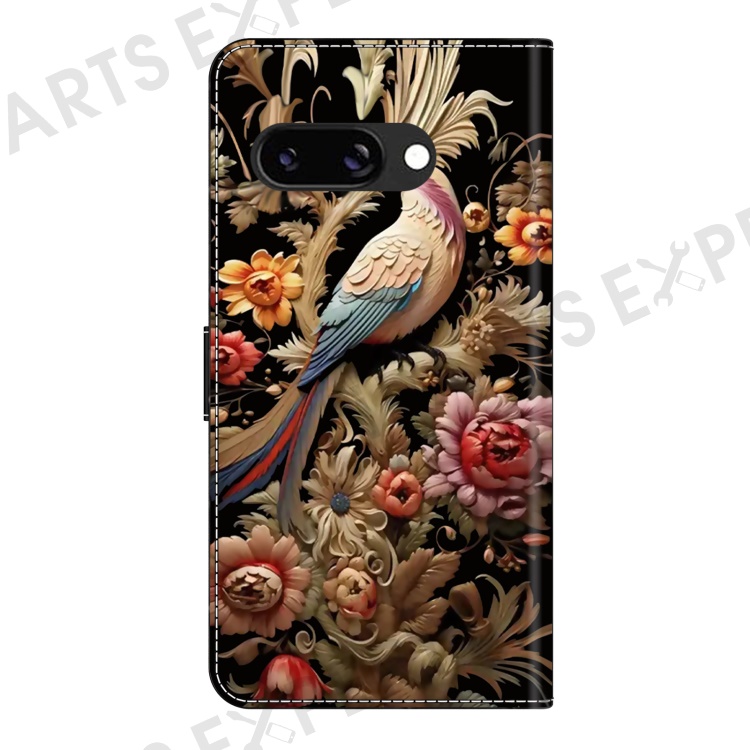 For Google Pixel 9a Case PU Leather Wallet Phone Cover with Stand - Vintage Flower and Bird
