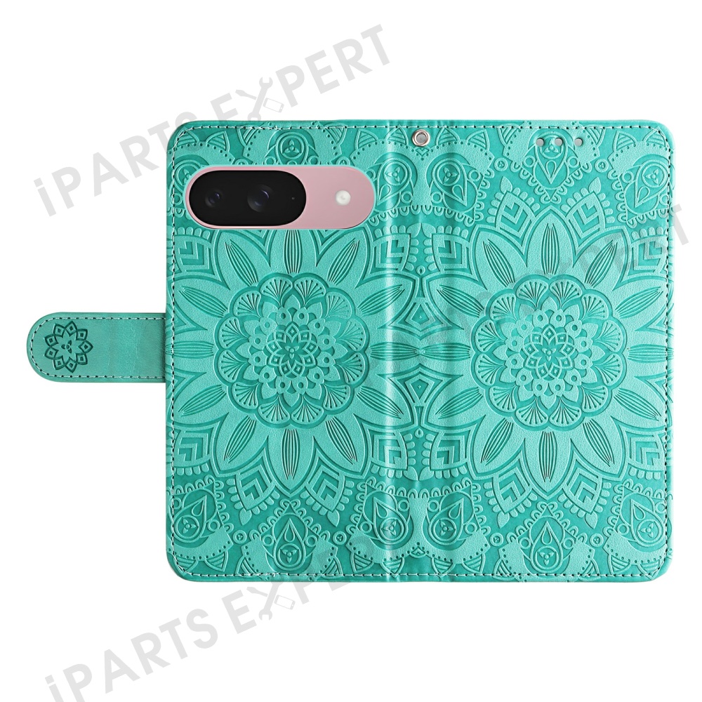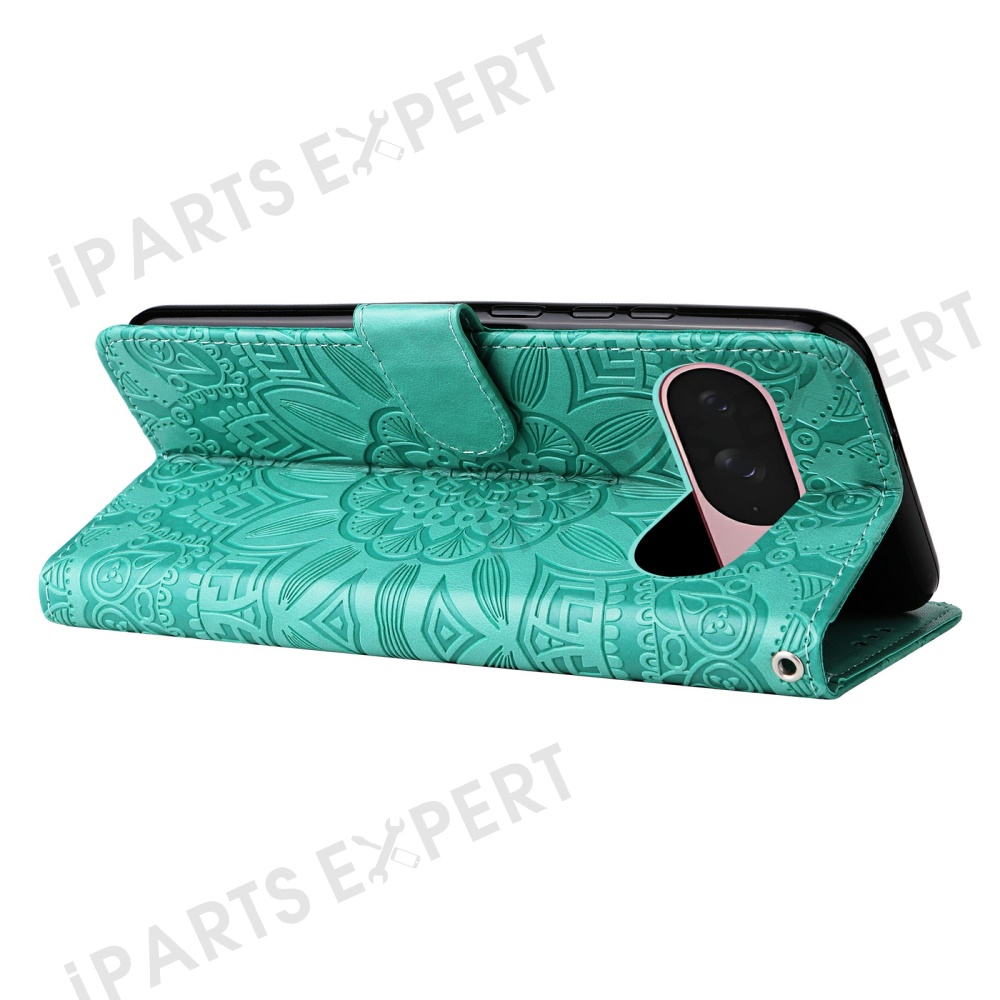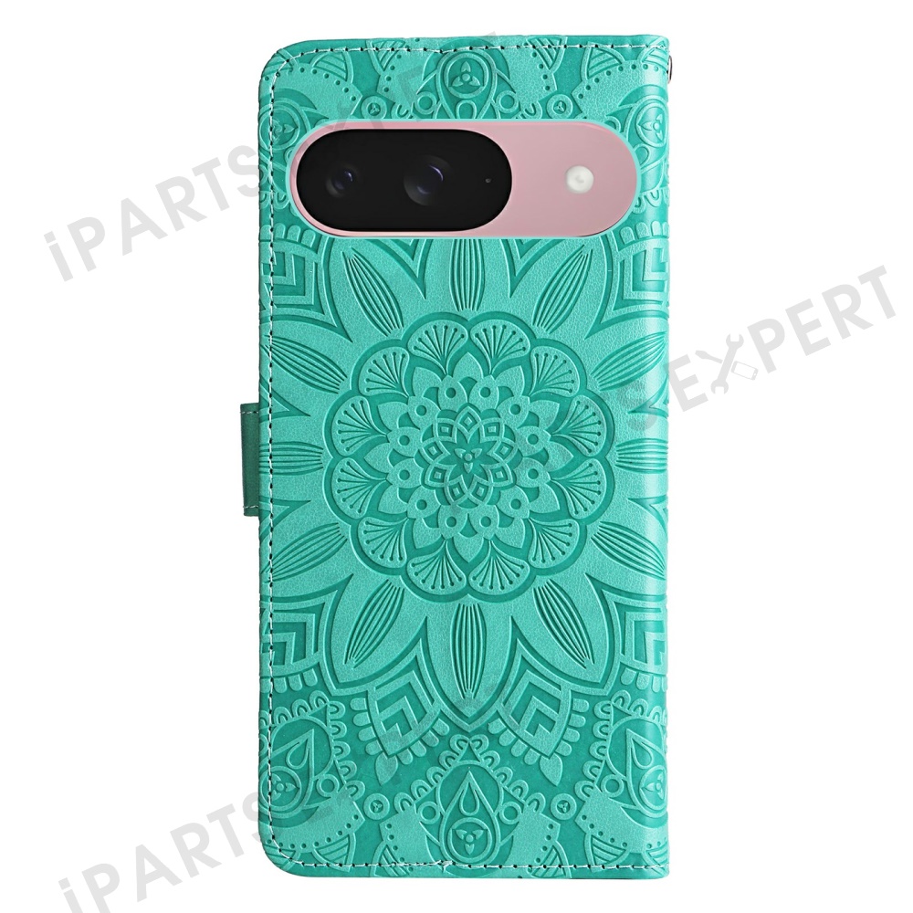 For Google Pixel 9a Case Sunflower Imprint Leather Wallet Phone Cover - Green