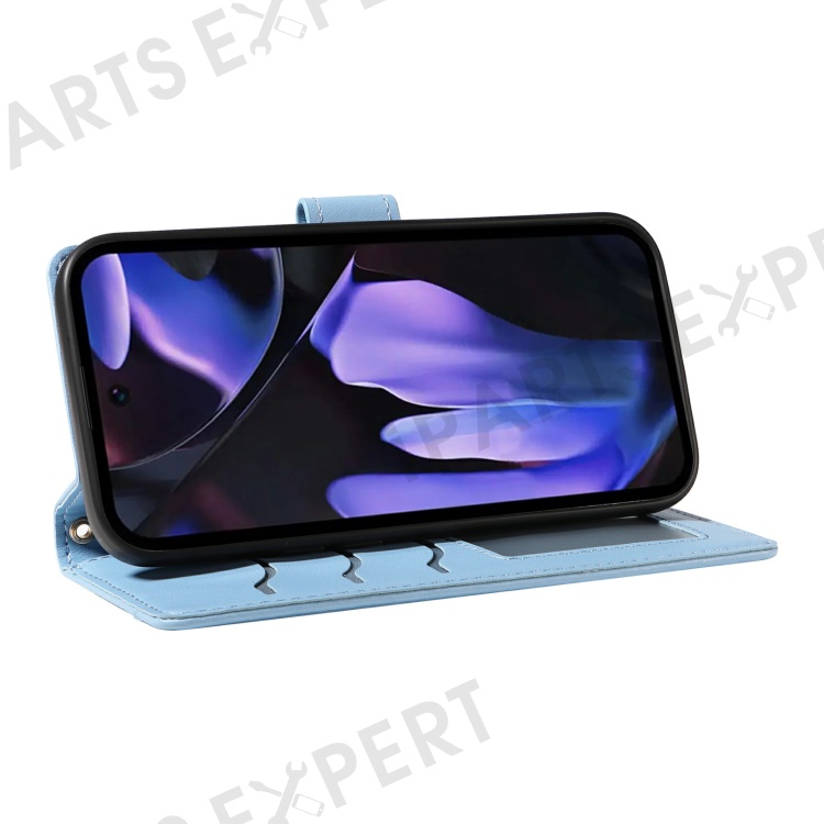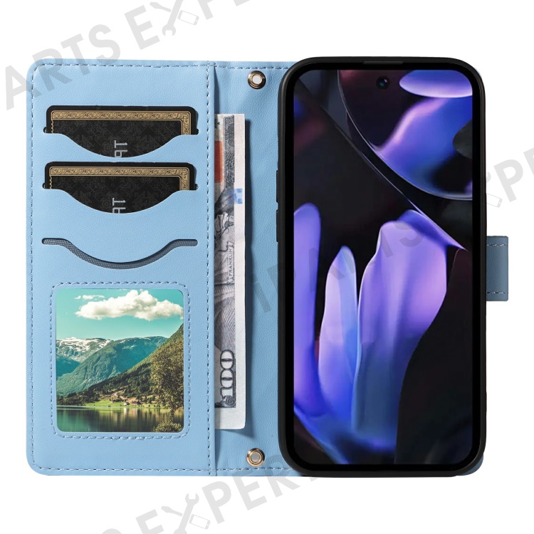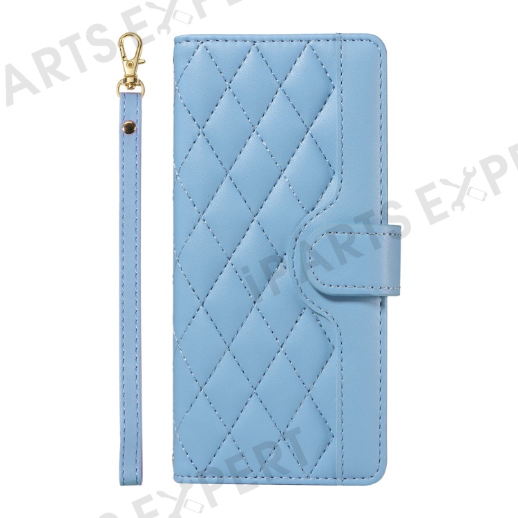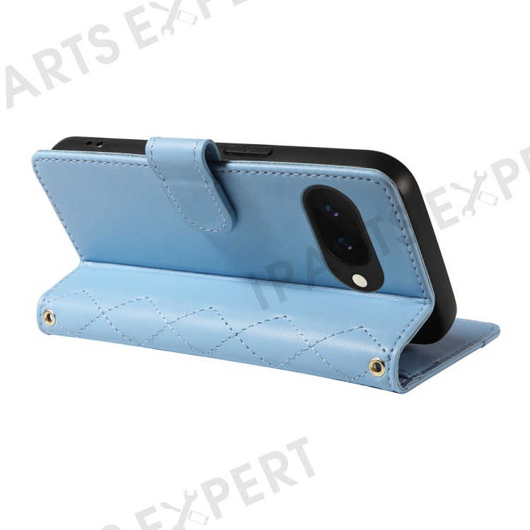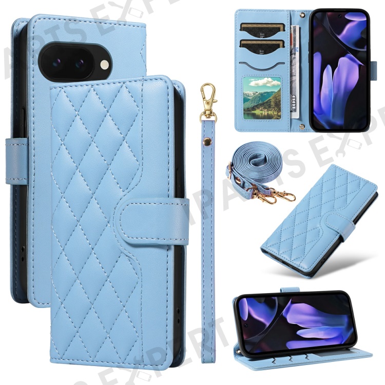 For Google Pixel 9a Wallet Case Rhombus Leather Phone Cover with Shoulder Strap, Wrist Strap - Blue