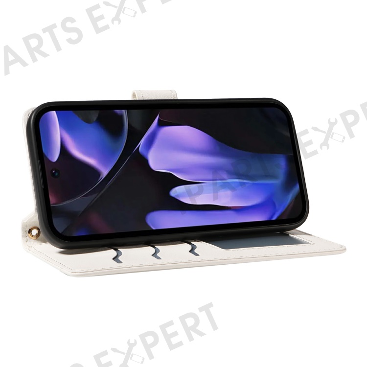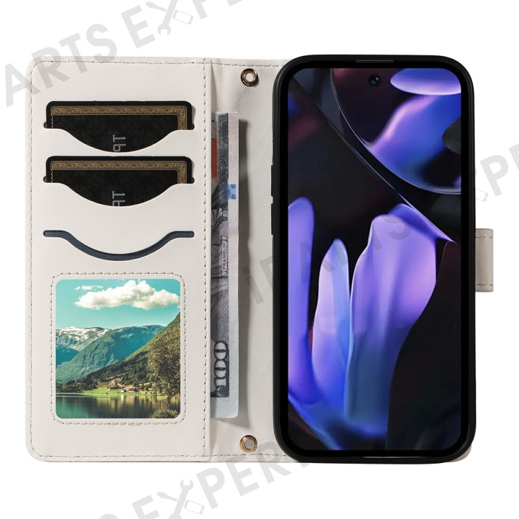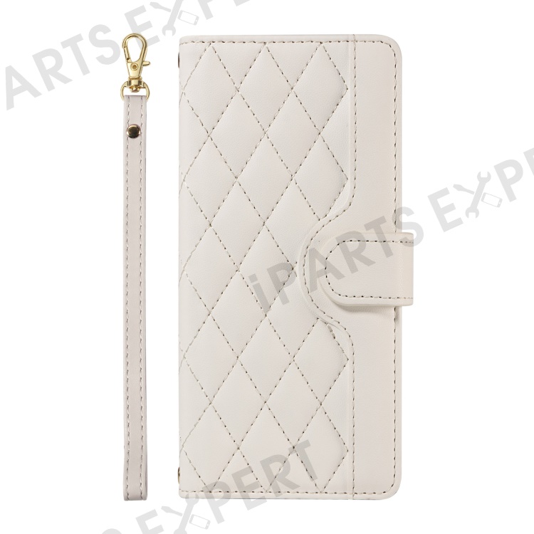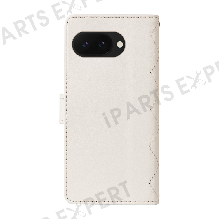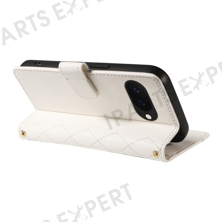 For Google Pixel 9a Wallet Case Rhombus Leather Phone Cover with Shoulder Strap, Wrist Strap - White