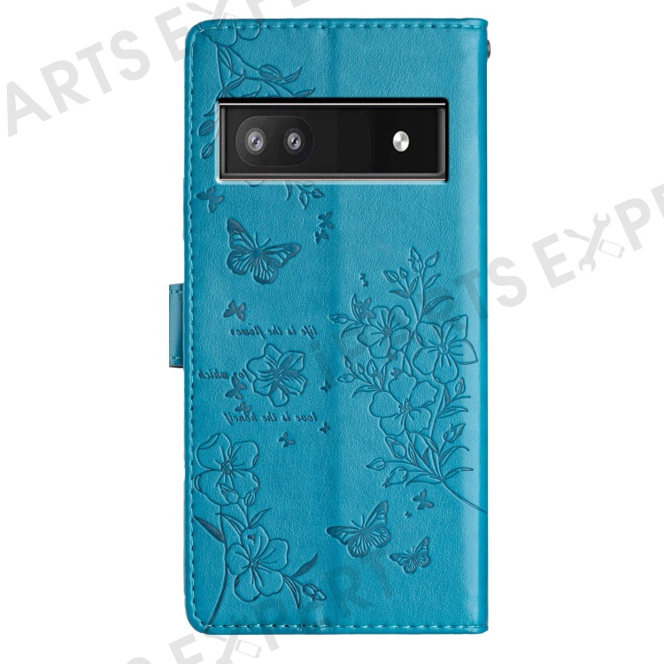 For Google Pixel 9a Wallet Phone Case Butterfly Floral Imprint Leather Flip Cover - Blue