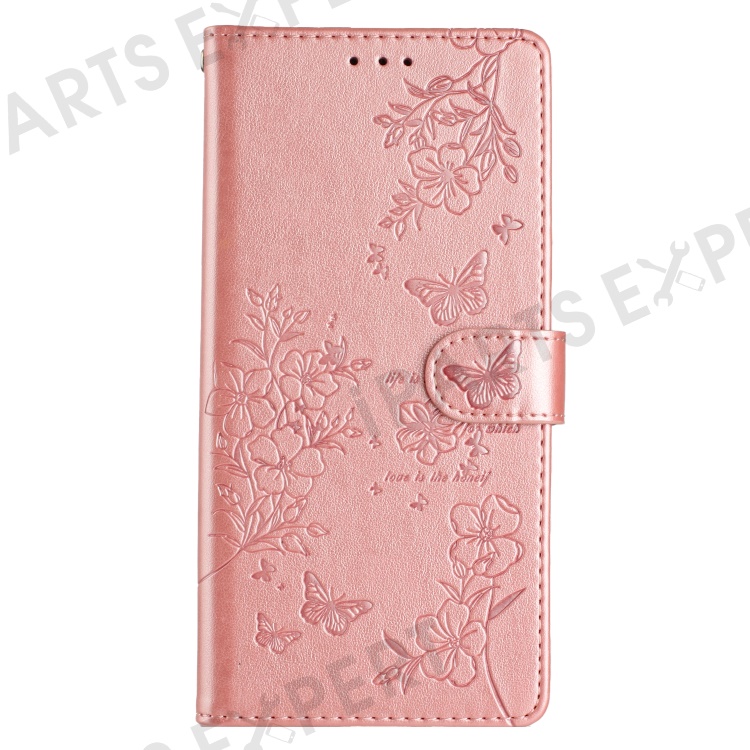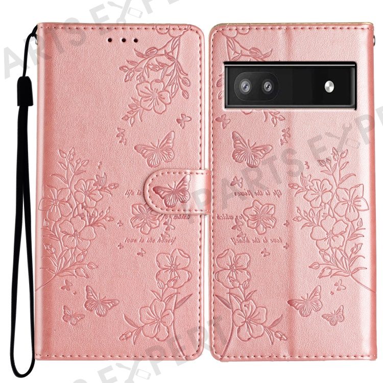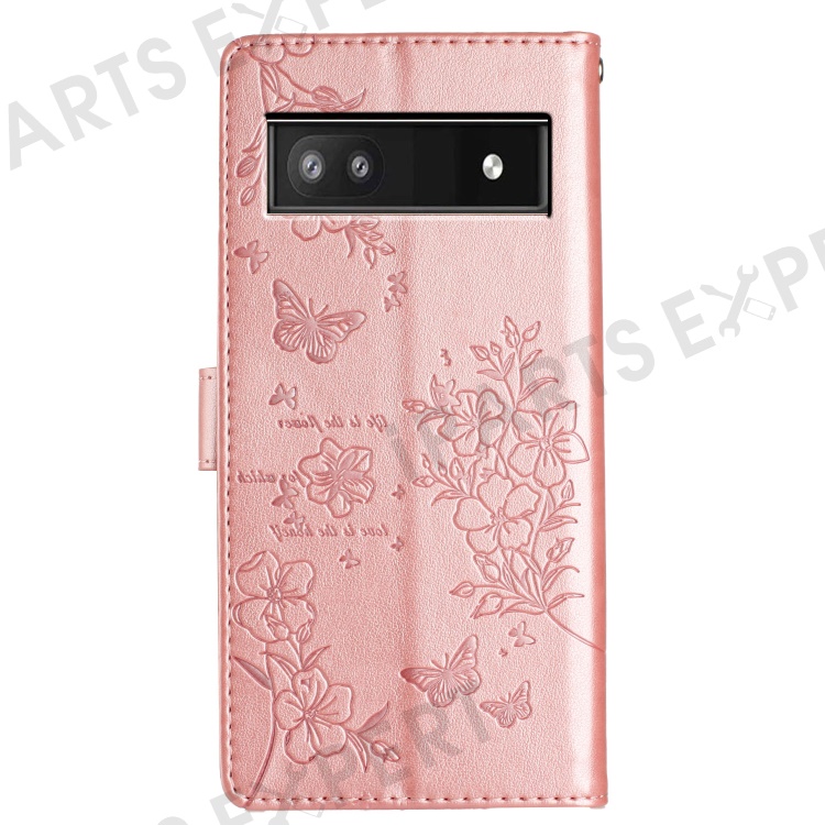 For Google Pixel 9a Wallet Phone Case Butterfly Floral Imprint Leather Flip Cover - Rose Gold